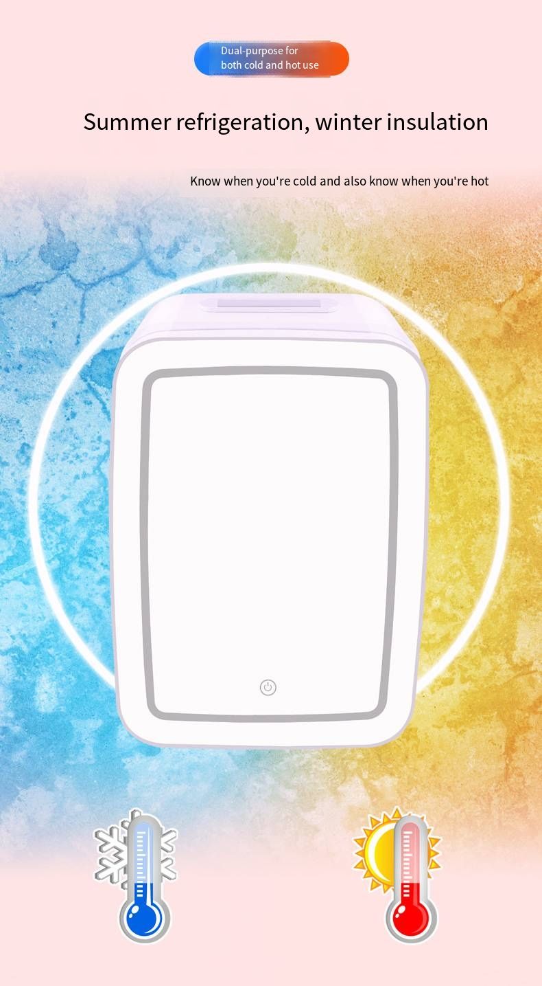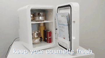 Quem poderia resistir a um frigobar que combina boa aparência e funcionalidade? Sua aparência é requintada e compacta, com um corpo branco leitoso simples e versátil que pode se misturar perfeitamente em qualquer ambiente, seja colocado em um quarto, em uma penteadeira ou usado em um carro, adicionando um toque de brilho ao espaço.
