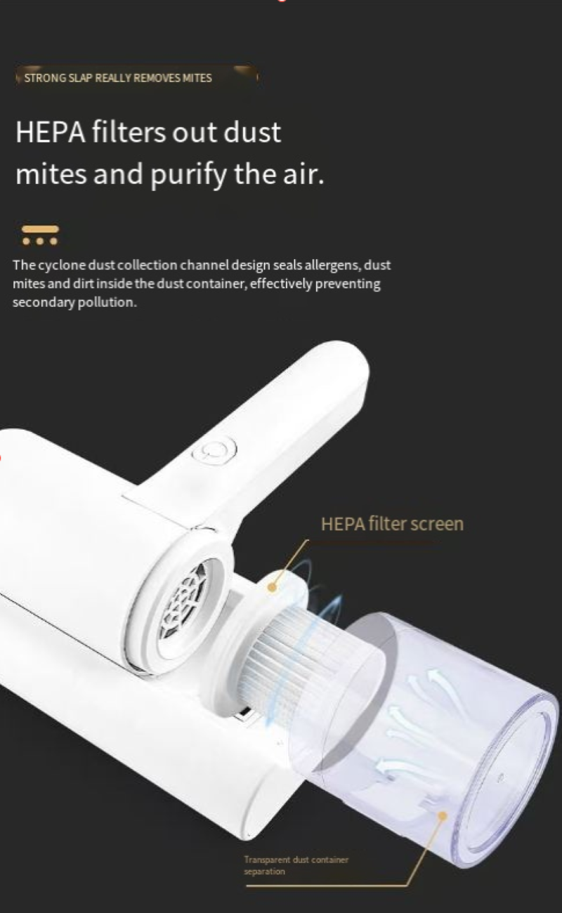 . Diga adeus aos espirros induzidos por ácaros e à pele vermelha e irritada! O removedor de ácaros doméstico compacto e fácil de usar também limpa sofás, colchões e almofadas, libertando toda a família de problemas com os ácaros.