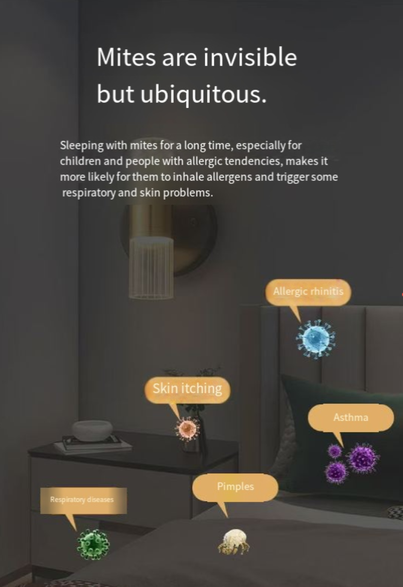 . Ácaros invisíveis escondidos por toda a sua cama? O removedor de ácaros domésticos os suga de uma só vez. Durma na "limpeza da roupa de cama seca ao sol" - chega de coceira na pele, apenas paz de espírito total!