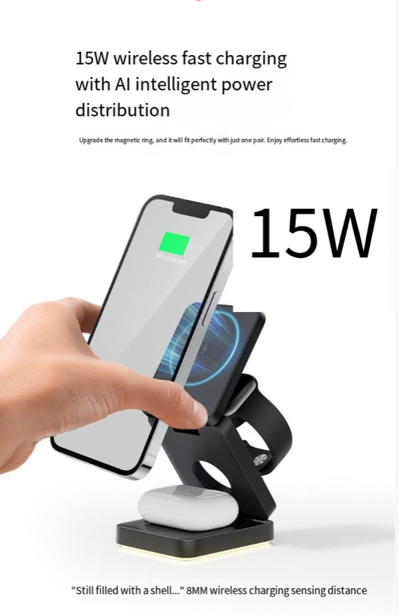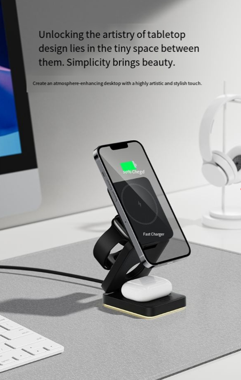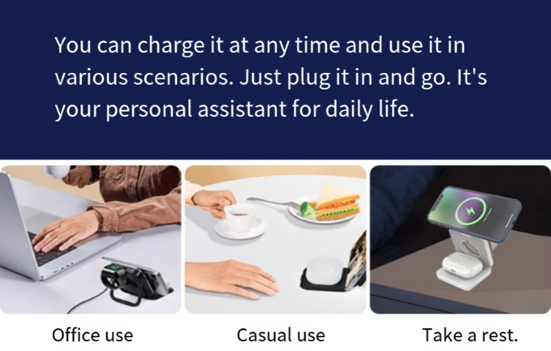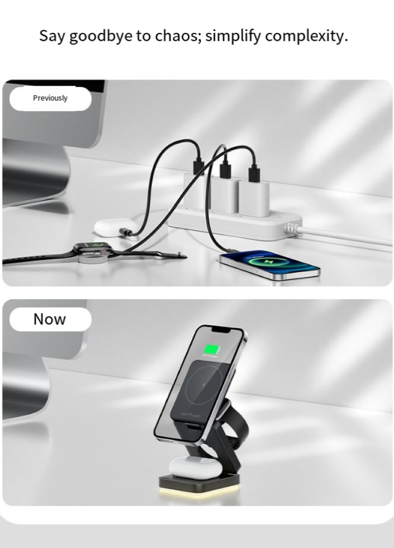 Você ainda se incomoda com cabos de carregamento emaranhados e ângulos estranhos ao carregar seus dispositivos? Este carregador magnético dobrável sem fio três em um, com seu carregamento magnético rápido, portabilidade dobrável e ajuste de vários ângulos, tornou-se o "rei do carregamento completo" para usuários de telefones celulares, fones de ouvido e relógios.