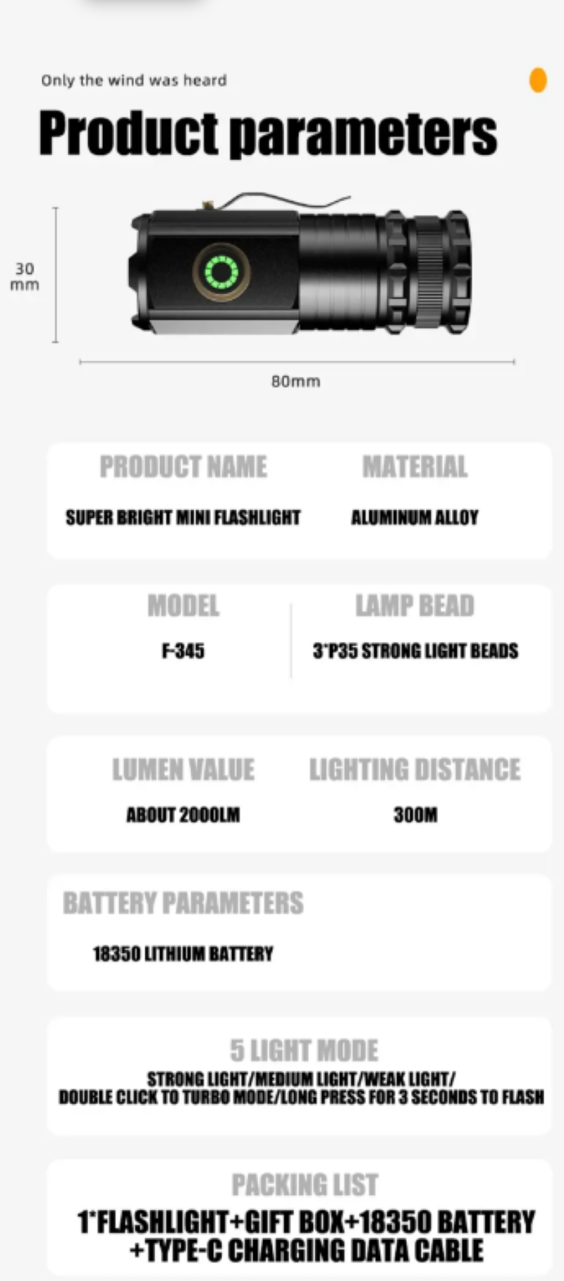 Desde as necessidades profissionais de exploração ao ar livre até as demandas secretas de segurança diária, esta lanterna de alto brilho "Little Cannon" pode atender a todas elas. Não é apenas uma ferramenta de iluminação, mas também seus olhos no escuro, sua guarda pessoal e seu parceiro de exploração. Não deixe que a escuridão impeça seus passos. Pegue esta "Bomba Leve" e conquiste todas as noites!