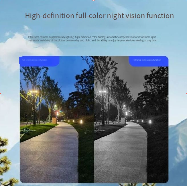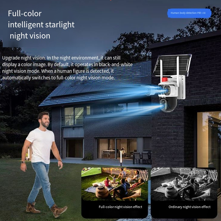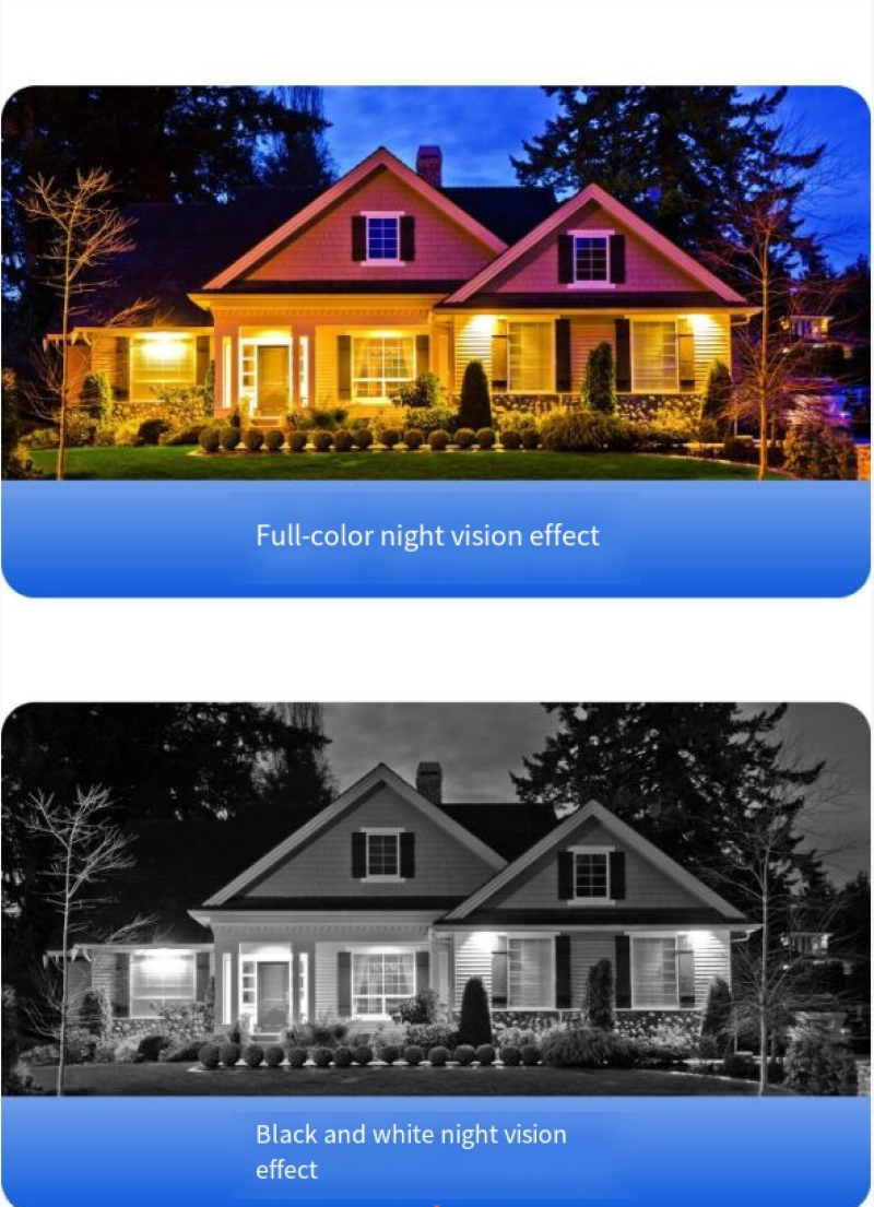 Possui função de visão noturna inteligente colorida à luz das estrelas. O modo padrão é a visão noturna em preto e branco. Quando um corpo humano é detectado, ele muda automaticamente para visão noturna colorida. No ambiente noturno, ele pode apresentar claramente as imagens coloridas, tornando a noite tão brilhante quanto o dia, e não perdendo nenhum detalhe, fornecendo suporte visual claro para a segurança noturna.