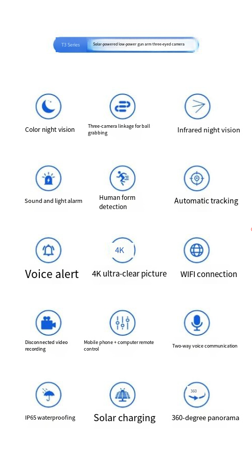 Na era atual, onde as demandas de segurança estão aumentando constantemente, a câmera de vigilância de três lentes, com suas vantagens como "cobertura panorâmica, sem pontos cegos; bateria de longa duração, proteção 24 horas por dia, 7 dias por semana; rastreamento inteligente, posicionamento preciso; visão noturna ultra-clara, sem obstrução no escuro; colaboração multilente, perspectivas ricas", tornou-se um "produto estrela" no campo da segurança, fortalecendo a defesa de segurança para vários cenários, incluindo residências e empresas.