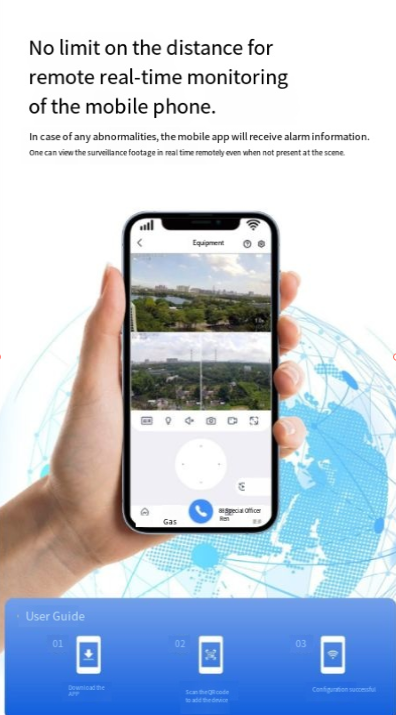 Com base no cruzeiro inteligente da plataforma super cloud, ele pode alcançar proteção de alcance total de 360 °. Possui ângulos de visão fixos e móveis, proporcionando visão panorâmica de 360°. Seja uma cena dinâmica ou estática, ele pode capturar com precisão, garantindo que não haja pontos cegos no monitoramento e fornecendo proteção de segurança abrangente para a área.