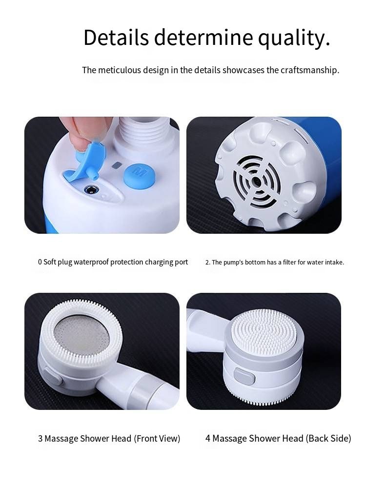 A duração da bateria é ainda mais impressionante! Uma única garrafa de água proporciona uma limpeza e um cuidado luxuosos da cabeça aos pés. Combinado com um painel de carregamento solar, pode passar dez dias ou até um mês ao ar livre e, todos os dias, terá um chuveiro que parece uma suite de hotel. A classificação IPX7 de impermeabilização torna-o perfeito para tempestades e acampamentos à beira de riachos. Mesmo que o deixe cair acidentalmente na água, ele continuará a funcionar normalmente depois de ser resgatado. A sua durabilidade rivaliza com a de um "soldado das forças especiais" ao ar livre.