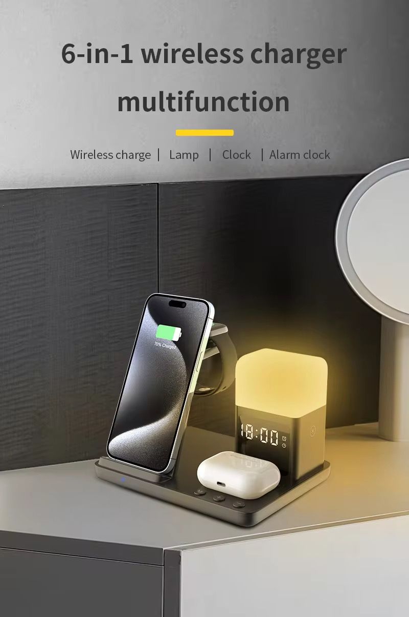 Você ainda está irritado com cabos de carregamento emaranhados para seu telefone, fones de ouvido e relógio? Este carregador sem fio multifuncional 6 em 1, com carregamento simultâneo para vários dispositivos, despertador e luz noturna combinados e uma estética minimalista de desktop, tornou-se o "hub de carregamento tudo-em-um" para usuários da Apple e organizadores de desktop.