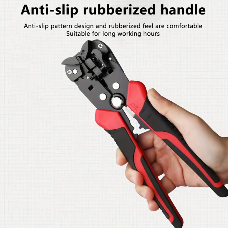 Sua aparência é altamente profissional - a alça antiderrapante na cor preta e vermelha, combinada com a cabeça precisa do clipe de metal, e o logotipo "3-IN-1 WIRE TOOL" destacando sua natureza multifuncional. Quando segurado na mão, o design ergonômico traz conforto e a textura sólida da ferramenta inspira instantaneamente confiança em seu desempenho.