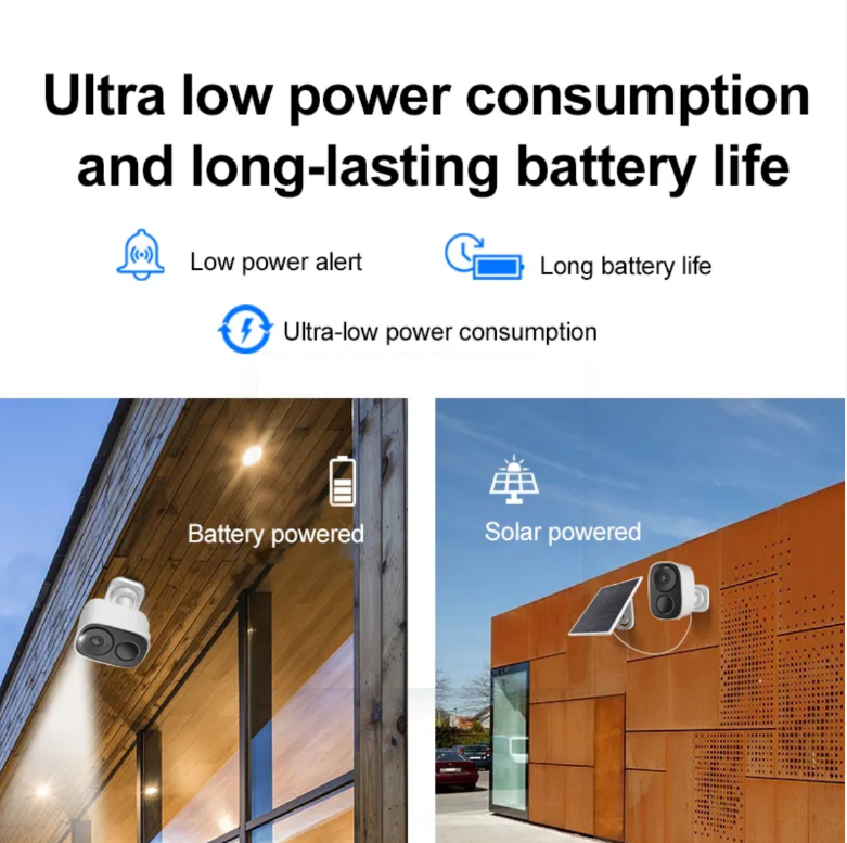 Adota um modo de fonte de alimentação dupla de energia solar e bateria. Em dias ensolarados, o painel solar armazena energia continuamente e, em dias chuvosos, a bateria mantém o fornecimento contínuo de energia sem interrupção. Ele elimina completamente as restrições dos cabos de alimentação e pode ser facilmente instalado em qualquer canto, como pátios, fazendas e perímetros de vilas. Combinado com a tecnologia de detecção humana PIR, ele pode identificar com precisão as atividades humanas e enviar alertas imediatamente em caso de situações anormais, permitindo que você acompanhe a dinâmica à sua porta a qualquer momento.