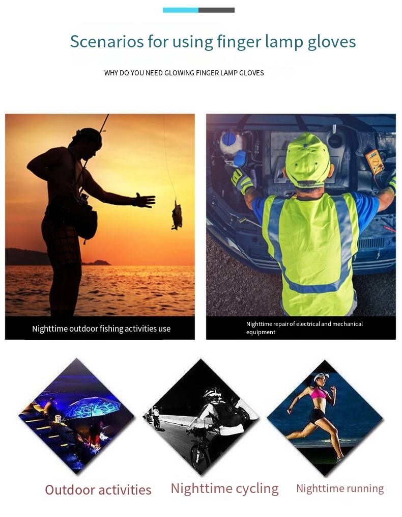 Em cenários ao ar livre, seu desempenho é particularmente notável. Para os entusiastas que gostam de pesca noturna, usá-lo elimina a necessidade de segurar uma lanterna. Ambas as mãos podem operar livremente a vara de pescar e arrumar a linha de pesca. A luz ilumina precisamente a área ao redor do anzol e do flutuador, garantindo que não haja sinais de peixes perdidos e tornando a experiência de pesca noturna mais focada e suave. Ao realizar reparos ao ar livre, como consertar uma bicicleta em um canto mal iluminado, a luz da luva pode iluminar claramente os detalhes das peças, e ambas as mãos podem apertar os parafusos de forma flexível e ajustar os componentes, melhorando significativamente a eficiência.