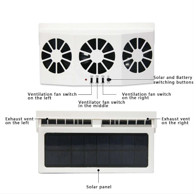 Durante o uso de um carro, problemas como ar quente e poluído geralmente incomodam os proprietários de carros. O exaustor interior movido a energia solar, com vantagens como "fonte de energia solar, economia de energia e conveniente; vários designs de ventiladores, ventilação extremamente poderosa; purificação do ar, criando um ambiente fresco