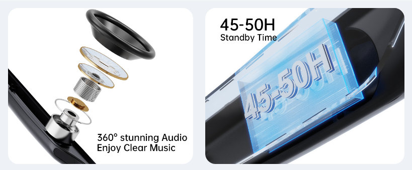 Está equipado com um sistema de som surround ultra-claro, com uma grande unidade de diafragma de 10 mm trabalhando em conjunto com algoritmos acústicos, capaz de criar um campo sonoro tridimensional imersivo. Se você deseja ouvir uma música suave em seu trajeto e fazer com que as notas permaneçam em seus ouvidos como água corrente; ou você quer ter um banquete musical dinâmico ao ar livre, o poderoso efeito sonoro pode inflamar instantaneamente a atmosfera, como se você estivesse em uma sala de concertos móvel dedicada.