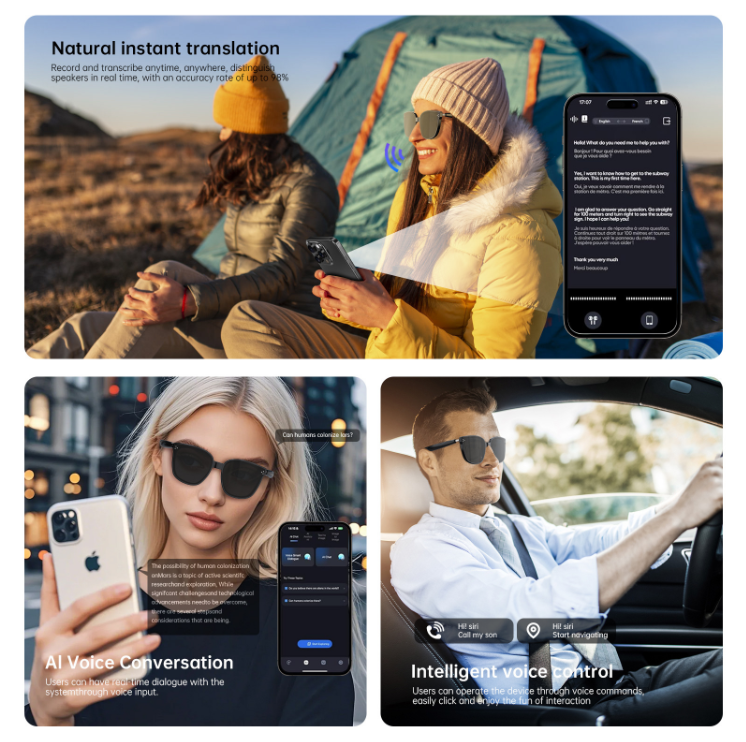 Seja saindo para viagens diárias e usando-o na rua, tornando-se o centro das atenções como um ícone da moda; ou em aventuras ao ar livre, contando com suas funções convenientes, enquanto explora o mundo, você pode desfrutar da conveniência trazida pela tecnologia enquanto experimenta a fusão de tecnologia e moda. Estes óculos de sol inteligentes podem permitir que você aproveite plenamente a alegria infinita da integração de tecnologia e moda, adicionando mais emoção à sua vida. Os óculos de sol inteligentes, com sua mistura característica de tecnologia e moda, tornaram-se uma presença altamente notável. Este par de óculos de sol inteligente combina "tradução inteligente, conectando o mundo livremente; qualidade de som de alta definição, experiência imersiva; controle conveniente, ativação com um clique; carregamento eficiente, bateria de longa duração; proteção solar e cuidados com os olhos, proteção abrangente", entre outras vantagens, proporcionando aos usuários uma nova experiência de estilo de vida inteligente. Seja para viagens diárias, comunicação de trabalho ou exploração ao ar livre, ele pode servir como um companheiro inteligente confiável.
