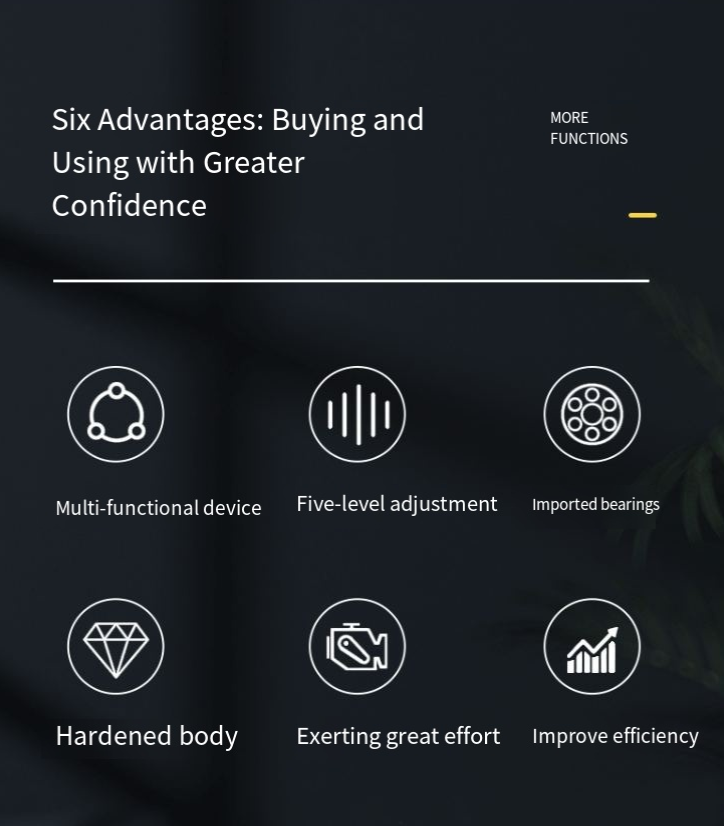 A operação é até "amigável" como um "haltere". O corpo da máquina está equipado com funções de ajuste de velocidade de uma velocidade e ajuste de ângulo de três velocidades. Os novatos também podem dominá-lo rapidamente. Ao mesmo tempo, possui um corpo compacto e uma empunhadura ergonômica, permitindo operação com uma mão e fácil manuseio, mesmo durante o trabalho de longo prazo, sem se sentir cansado. Combinado com um interruptor de placa de pressão de segurança, o design de partida do gatilho não apenas garante a segurança operacional, mas também simplifica o processo de operação, alcançando verdadeiramente "economia de tempo e esforço, eficiência dobrada".
