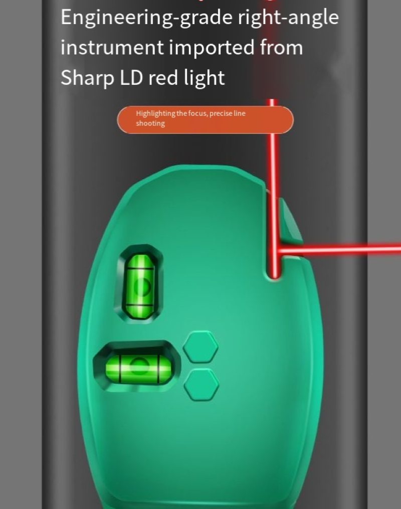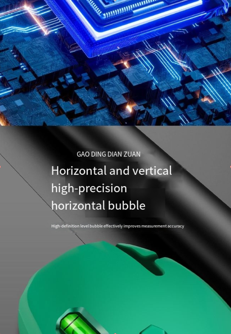 É o "tipo claro" sob luz forte, equipado com laser de luz verde de alto brilho, que é claramente visível mesmo em ambientes externos de luz forte. Em canteiros de obras, pode fornecer linhas de referência horizontais claras para alvenaria de parede e nivelamento do solo; durante a instalação doméstica, a calibração horizontal de pinturas e prateleiras não precisa mais de comparação repetida; Durante a depuração de equipamentos externos, mesmo sob o sol escaldante, ele pode marcar ângulos com precisão, garantindo que cada instalação seja "horizontal e vertical".
