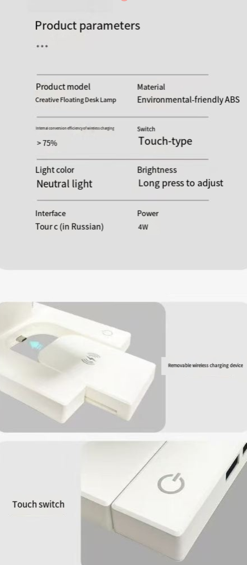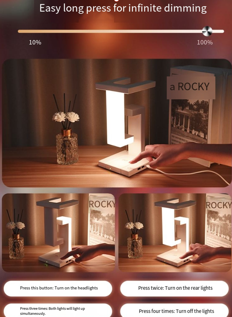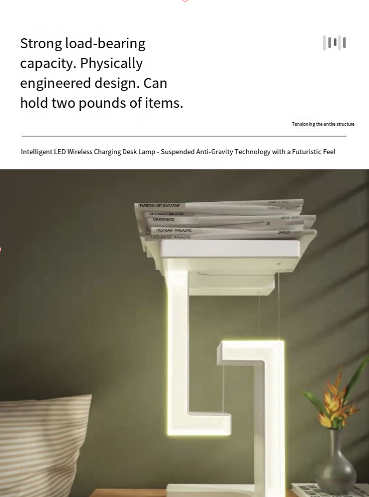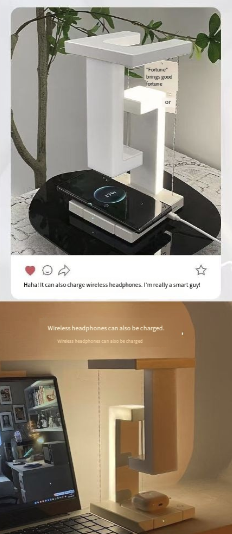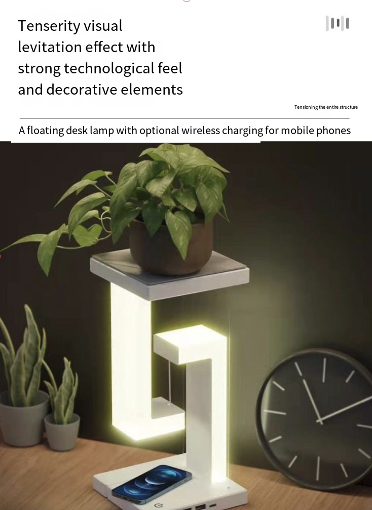 É uma ferramenta de iluminação, com sua suave fonte de luz LED sendo gentil e não ofuscante. Pode criar um ambiente de iluminação confortável para ler, escrever e relaxar. É um hub de carregamento, apresentando tanto carregamento sem fio para telefones móveis quanto interfaces USB com fio. Fones de ouvido e tablets também podem ser carregados a qualquer momento. É também uma instalação artística para mesa, com sua forma geométrica feita de material ABS e a tensão visual da levitação magnética. Colocado com plantas verdes ou revistas, pode se tornar o ponto focal. Pode suportar até 2 libras, combinando praticidade e estética.