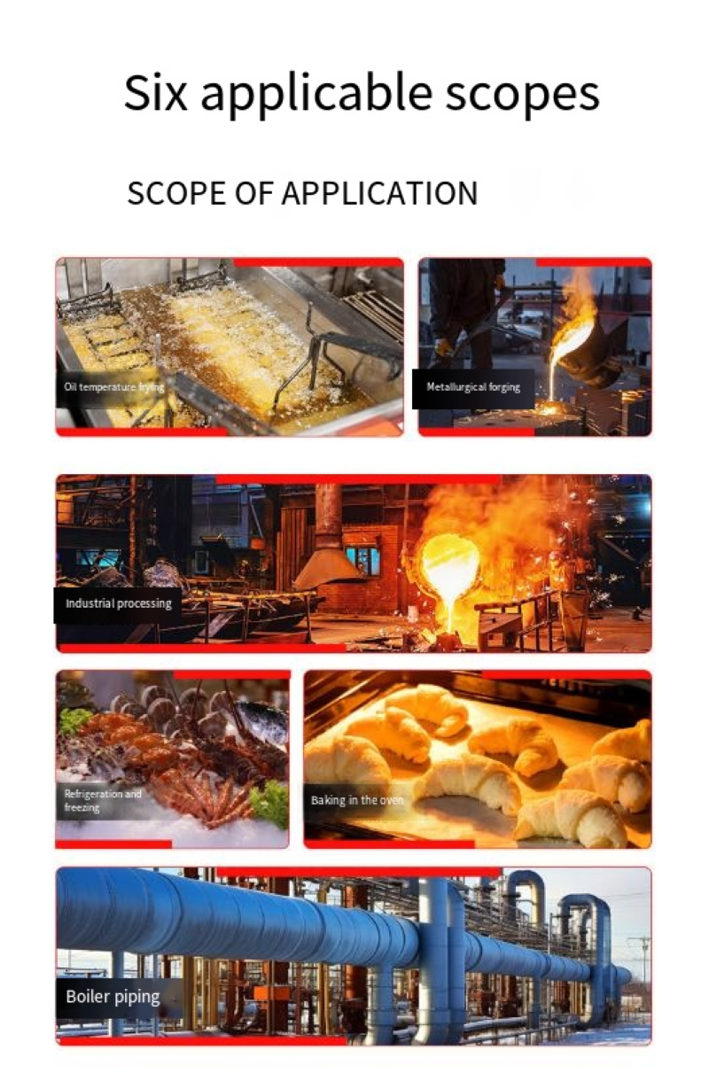 Em termos de desempenho, possui uma função de desligamento automático de 30 segundos para economizar energia; O corpo é projetado com recursos antiderrapantes, proporcionando uma pegada confortável e é conveniente para operação a longo prazo. Seja no controle de qualidade na produção industrial (como temperaturas de fritura de alimentos, temperaturas de processamento de metais) ou detecção de falhas na manutenção de equipamentos (como detecção de calor de motores e tubulações), ele pode exercer seu poder com precisão.