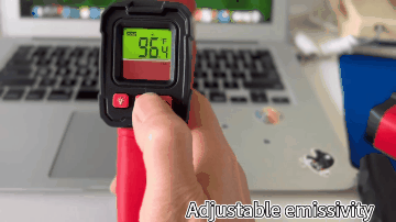 Funcionalmente, suporta emissividade ajustável, permitindo que se adapte às necessidades de medição de temperatura de diferentes materiais (como metais, plásticos, alimentos, etc.); a faixa de medição cobre -50 a 550°C, capaz de lidar com ambientes frios e cenários industriais de alta temperatura. É equipado com um display retroiluminado clássico, permitindo uma leitura clara dos valores de temperatura mesmo em ambientes escuros, e suporta uma alternância de um clique entre °C e °F, atendendo a diferentes hábitos de uso.