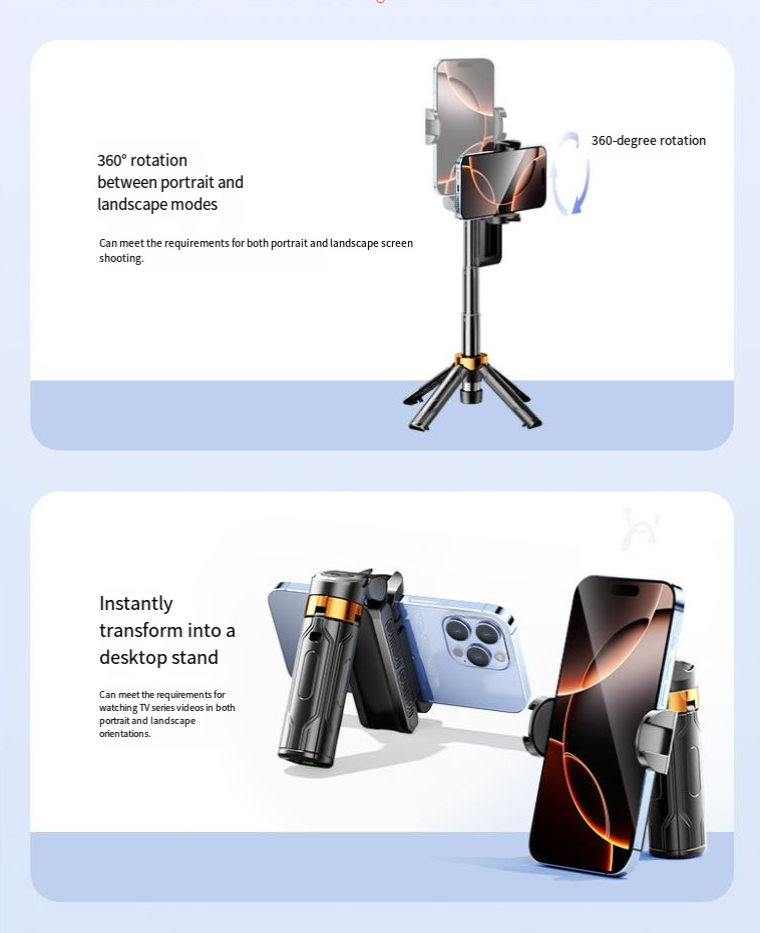 Nos cenários atuais de fotografia e transmissão ao vivo, o mini bastão de selfie, com suas vantagens como "aplicável em vários cenários, um dispositivo resolve tudo; compacto e portátil, fácil de transportar; Rotação de 360°, ângulos livres; operação de controle remoto, conveniente e eficiente; Suporte estável, imagem nítida", tornou-se uma ferramenta poderosa para as pessoas gravarem belos momentos e realizarem transmissões ao vivo, trazendo uma nova atualização para a experiência de filmagem.