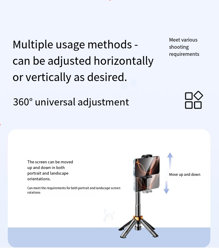 De selfies diárias, filmagens de vlogs a gravações de cenários ao ar livre, este mini bastão de selfie pode lidar com todos eles perfeitamente. Com ele, você não precisa mais incomodar os transeuntes para tirar fotos para você, e pode capturar os belos momentos da vida a qualquer momento, tornando cada pressionamento do obturador um precioso fragmento de memória. Deixe a liberdade da fotografia estar sempre ao seu lado.