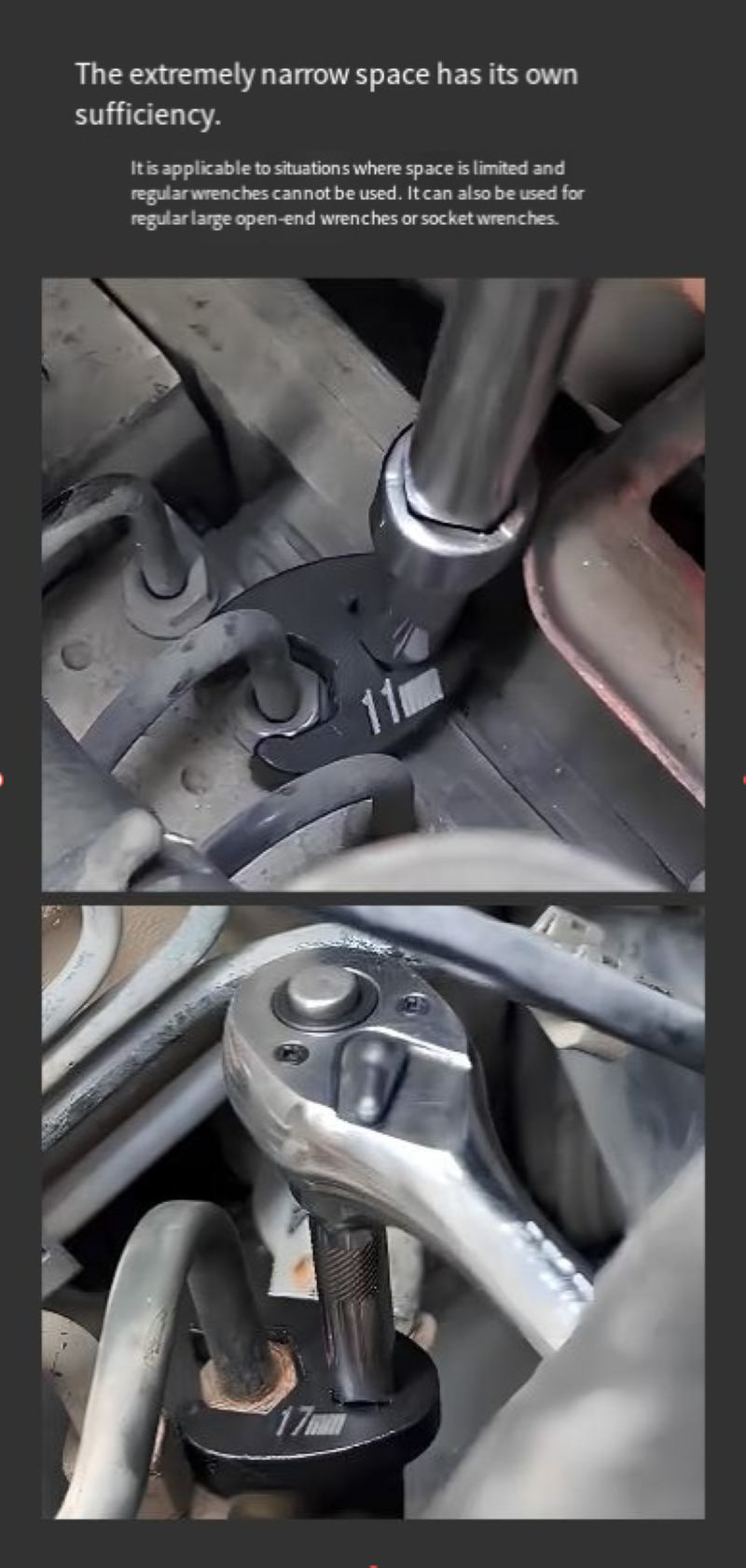 É feita sob medida para componentes de tubos, como tubos de óleo e canos de água: 19 especificações diferentes de cabeças abertas, encaixando perfeitamente em vários diâmetros de tubos, desde tubos finos até tubos de água grossos. Você não precisa mais trocar de ferramenta com frequência; A abertura da chave inglesa é em formato de arco com design antiderrapante, que pode agarrar firmemente o corpo do tubo, evitando deslizamentos e danos à superfície do tubo durante a rotação, evitando completamente a situação constrangedora de "quebrar o tubo de óleo e vazar óleo".