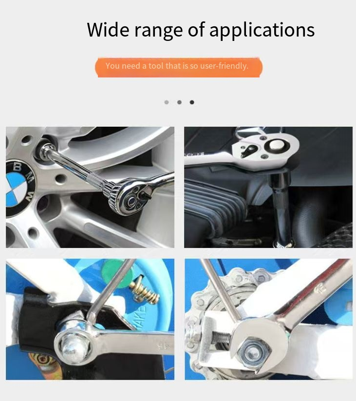 Não é uma "chave inglesa única", mas um "kit multiuso" que reúne todas as ferramentas comuns: inclui soquetes de vários tamanhos (adequados para parafusos de diferentes espessuras), brocas hexagonais quadradas/inclinadas/internas (parafusos de cobertura para móveis e dispositivos eletrônicos), hastes de extensão longas e curtas + hastes flexíveis e macias (adequadas para diferentes espaços), desde pequenos parafusos de desmontagem de telefones até parafusos grossos de pneus de carro, desde fixar ferragens de guarda-roupas até porcas dos painéis traseiros de eletrodomésticos. Não há mais necessidade de vasculhar gavetas e armários para procurar ferramentas. Este conjunto está totalmente equipado com todas as especificações e pode ser usado diretamente quando for pego.