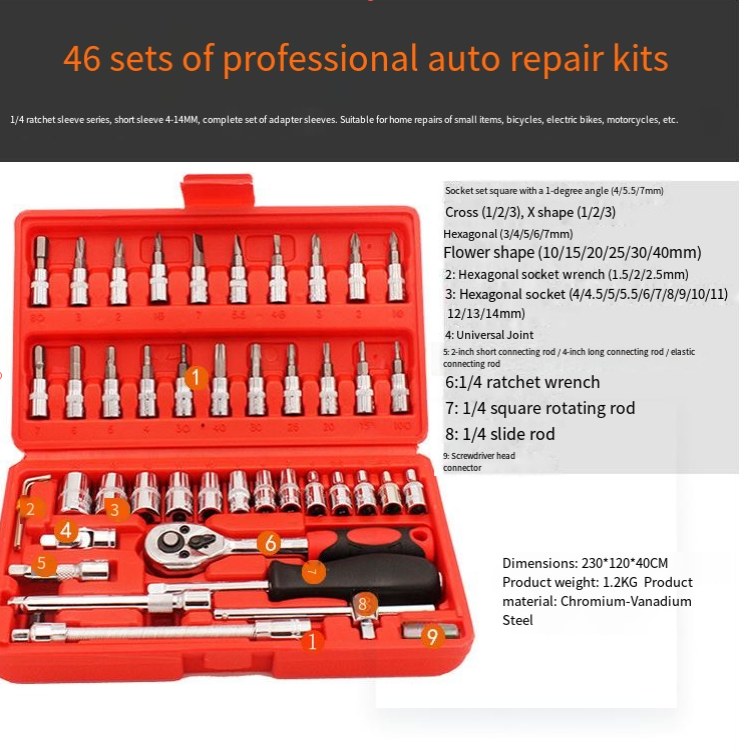 Você ainda se preocupa com a falta de ferramentas para consertos de carros e a dificuldade de encontrar ferramentas adequadas para desmontagem doméstica? Esta chave combinada multifuncional de 46 peças é sua "chave mestra de reparo". Desde emergências de veículos até desmontagem residencial, desde reparos profissionais de automóveis até manutenção de equipamentos externos, ele cobre todos os requisitos para apertar e afrouxar, permitindo que você se torne um "mestre dos reparos" a qualquer hora e em qualquer lugar.