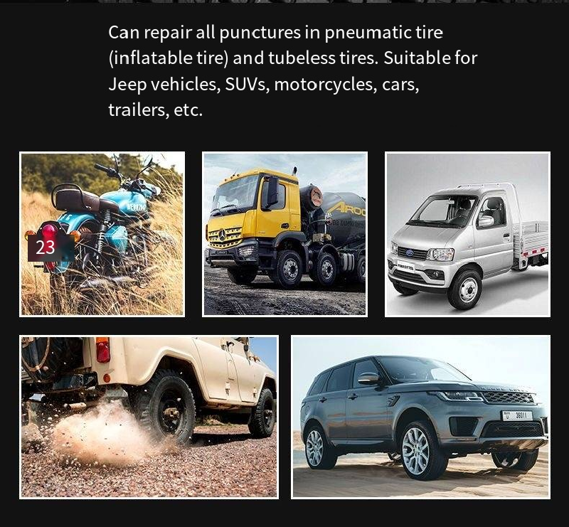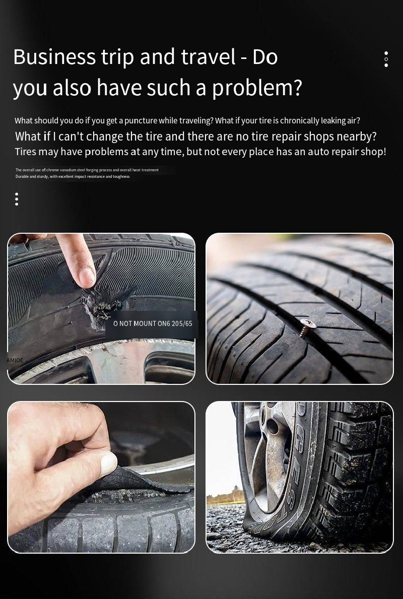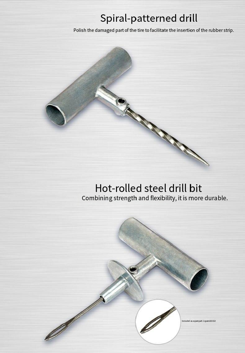 É o "companheiro de emergência tudo-em-um" para pneus: 69 configurações cobrem todo o processo de reparo do pneu – um alicate pontiagudo para remover o prego, uma chave de fenda para expandir o furo, várias tiras adesivas adequadas para diferentes padrões de pneus, além de tampas de válvula, peças de vedação e outros acessórios de detalhe. Se encontrar um pneu furado, não entre em pânico: primeiro remova o prego e limpe os detritos, depois use uma furadeira de expansão para cobrir o furo, insira a tira adesiva na fresta e pressione firmemente. Pode ser concluído em 10 minutos para um reparo de emergência no pneu, sem precisar remover o pneu ou esperar pelo guincho. Uma vez consertado, você pode continuar dirigindo normalmente. Este kit de furo de pneus pode lidar facilmente com pequenos furos nos pneus de carros familiares e SUVs.