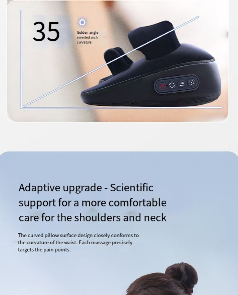 Ele entende os pontos de dor de quem fica sentado por longos períodos: o design aprimorado de suporte reverso não pressiona o pescoço como a antiga almofada de pescoço, mas apoia firmemente seus ombros e pescoço, esticando simultaneamente o músculo trapézio. Mesmo deitado para massagear, é completamente livre de estresse. As cabeças de massagem 6D de toque suave podem ajustar seus ombros e pescoço de múltiplos ângulos, imitando o "esfregar + apertar" das mãos humanas, segurando com precisão o músculo rígido do trapézio, tornando-o 10 vezes mais confortável do que uma massagem aleatória.