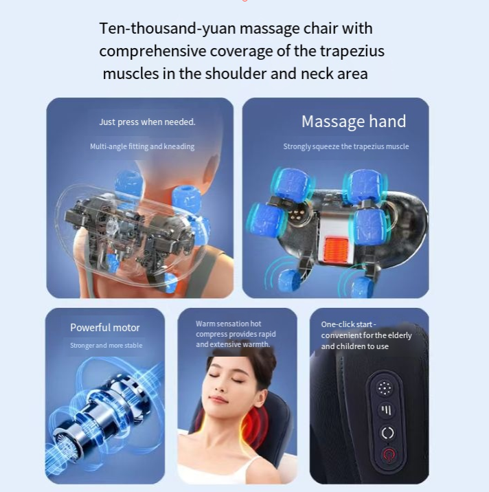 A função de terapia de calor é uma "adição essencial": pressão térmica em camadas duplas em grandes áreas, que vai esquentando durante a massagem, envolve seus ombros e pescoço com uma sensação de calor, relaxando instantaneamente os músculos tensos e até eliminando a fadiga – use-a para aquecimento no inverno, relaxamento no verão e é adequada para todas as estações.