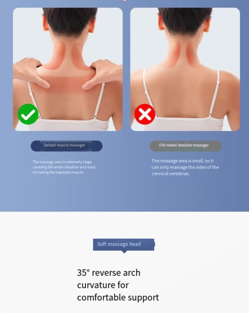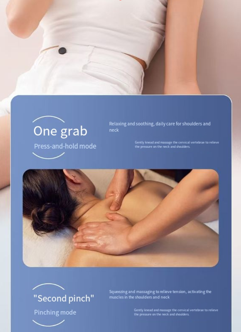 Ele entende melhor os pontos de dor daqueles que passam longos períodos sentados: o design aprimorado do suporte reverso não pressiona o braço como o modelo antigo. Em vez disso, ela sustenta firmemente os ombros e o pescoço, esticando simultaneamente os músculos do trapézio. Mesmo deitado, é completamente livre de estresse. A cabeça de massagem 6D de toque suave pode se ajustar aos ombros e ao pescoço de múltiplos ângulos, imitando a ação de "beliscar + apertar" da mão humana, segurando com precisão os rígidos músculos trapézios. É 10 vezes mais confortável do que fazer massagem às cegas.