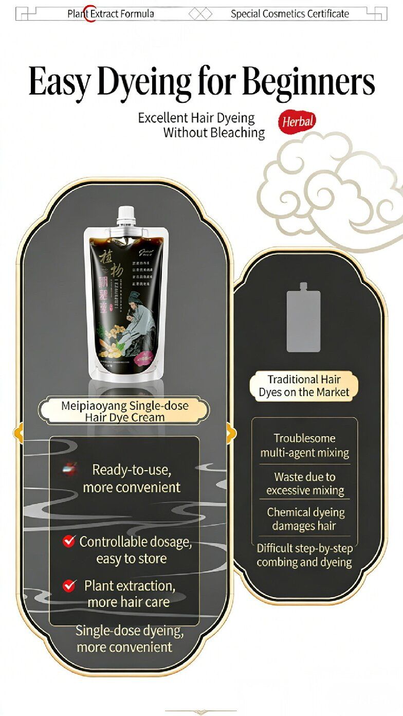 O efeito após a tintura também é um equilíbrio entre "natural" e "duradouro": a cor é próxima da cor original, sem branco falso ou preto morto, e se conecta naturalmente com a própria cor do cabelo; a intensidade da cor dura muito tempo, e não é fácil desbotar durante a lavagem e os cuidados diários, e uma tintura pode manter a textura preta por 1-2 meses.