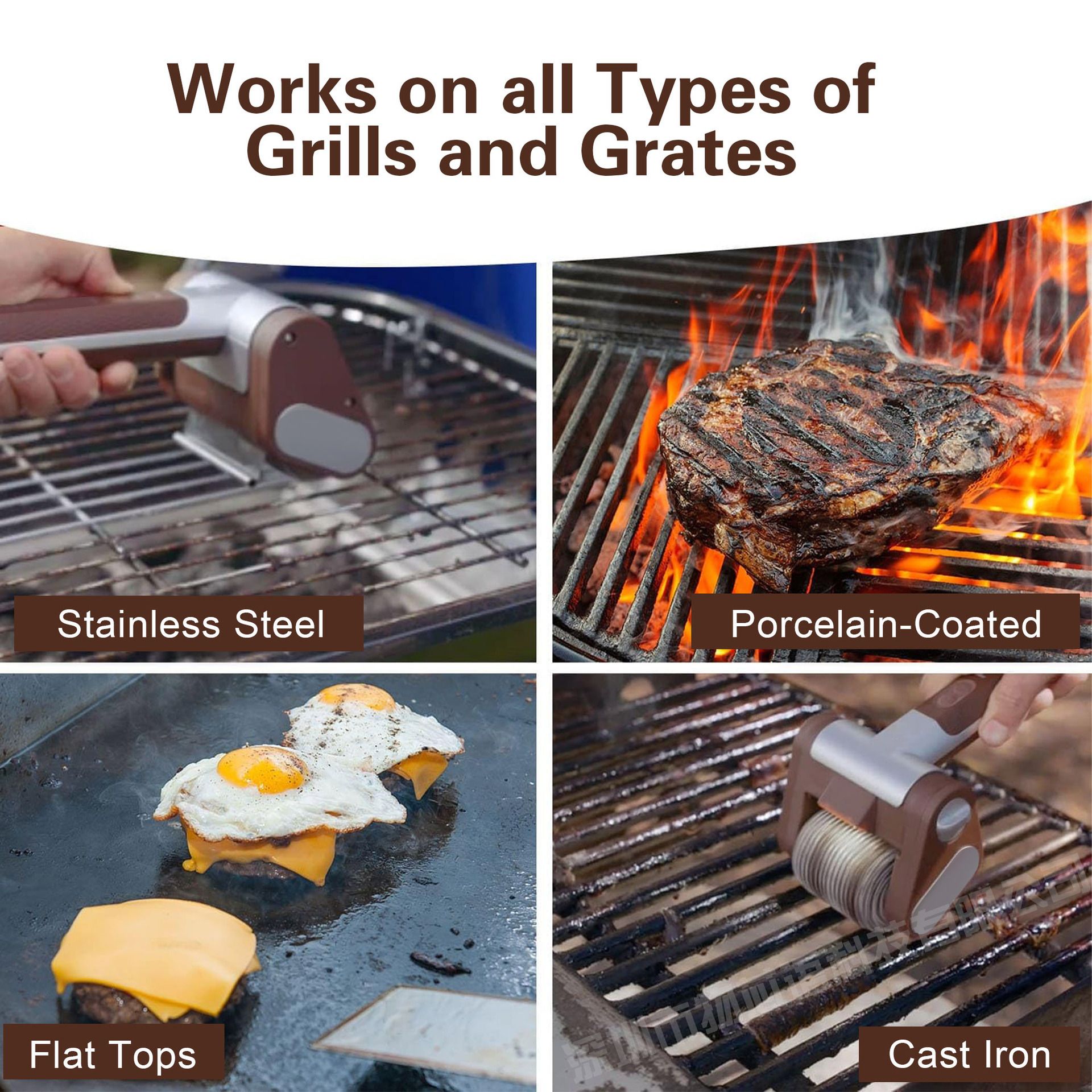 Para os entusiastas de churrasco no quintal, esta escova para churrasqueiras giratórias é realmente uma "maravilha da limpeza". É sem fio e recarregável, opera em alta velocidade de 350 RPM e vem com uma malha de limpeza de aço inoxidável 304. Sem a necessidade de pré-aquecer a churrasqueira, ela pode facilmente remover gordura e fuligem resistentes. As luzes LED embutidas não garantem limpeza死角, e é adequada para todos os tipos de churrasqueiras e assadeiras, como aço inoxidável, revestida com esmalte e ferro fundido. Também passou pela certificação de segurança para lava-louças. Como um produto best-seller exibido na TV, elimina completamente o risco de queda de cabelo das escovas tradicionais e é um presente atencioso para todos os chefs de quintal, tornando o processo de limpeza após cada churrasco fácil e tranquilizador.
