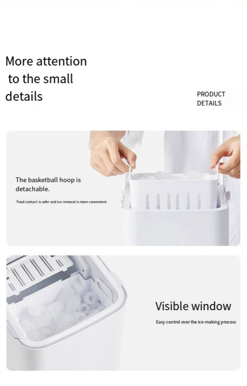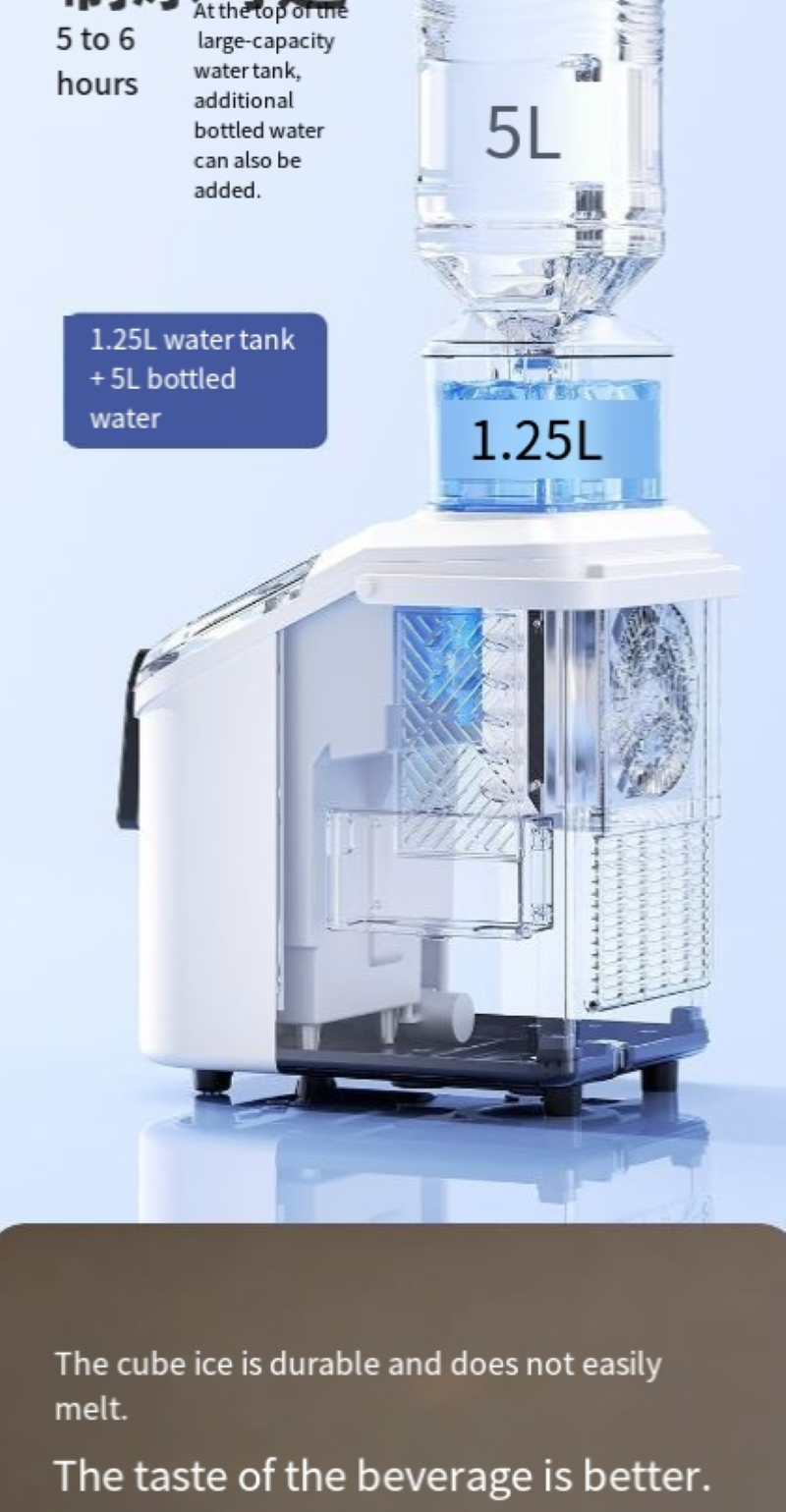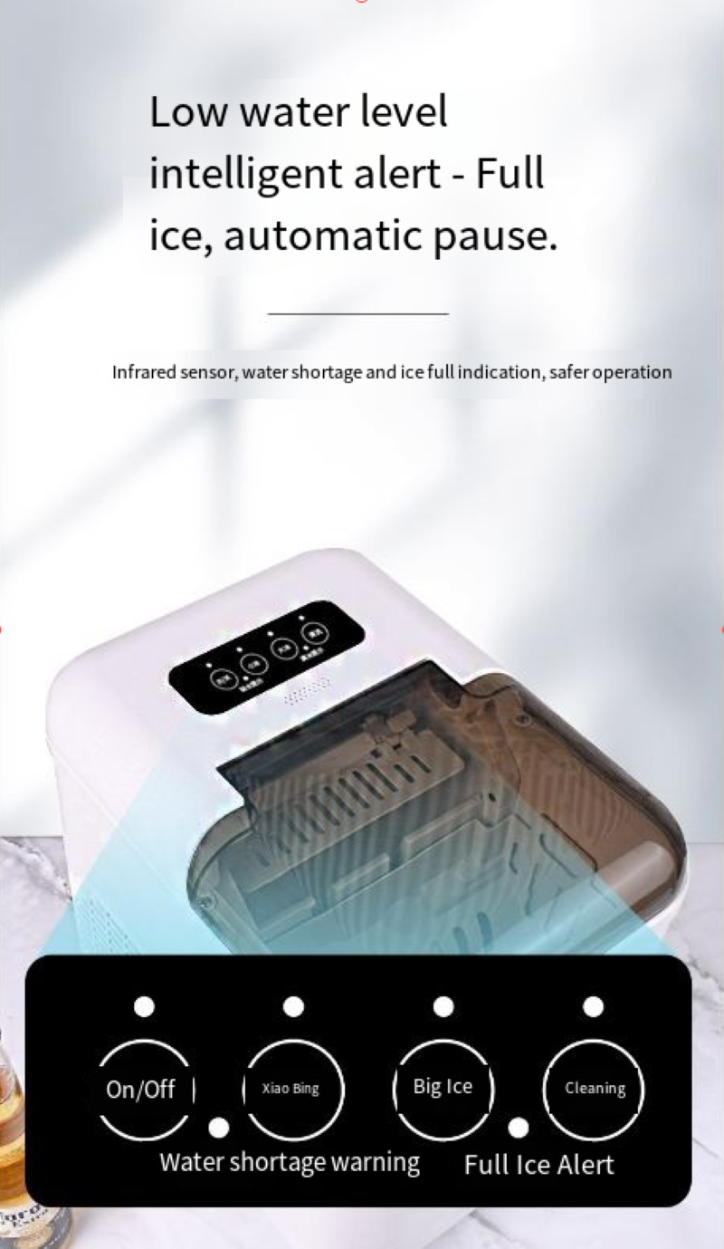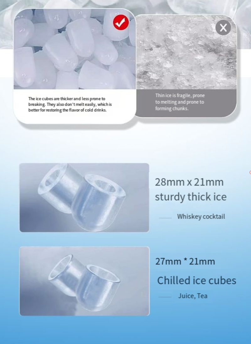 Sua velocidade de fabricação de gelo é verdadeiramente "relâmpago de verão", levando apenas 6-8 minutos para produzir um lote completo de cubos de gelo. Se você deseja fazer um refrigerante de frutas refrescante para seu filho ou preparar um rico americano gelado para si mesmo, não há necessidade de preparar cubos de gelo com várias horas de antecedência. Você pode tomar uma bebida gelada rápida e satisfatória sempre que quiser, permitindo que a alegria das bebidas geladas seja "instantaneamente percebida".