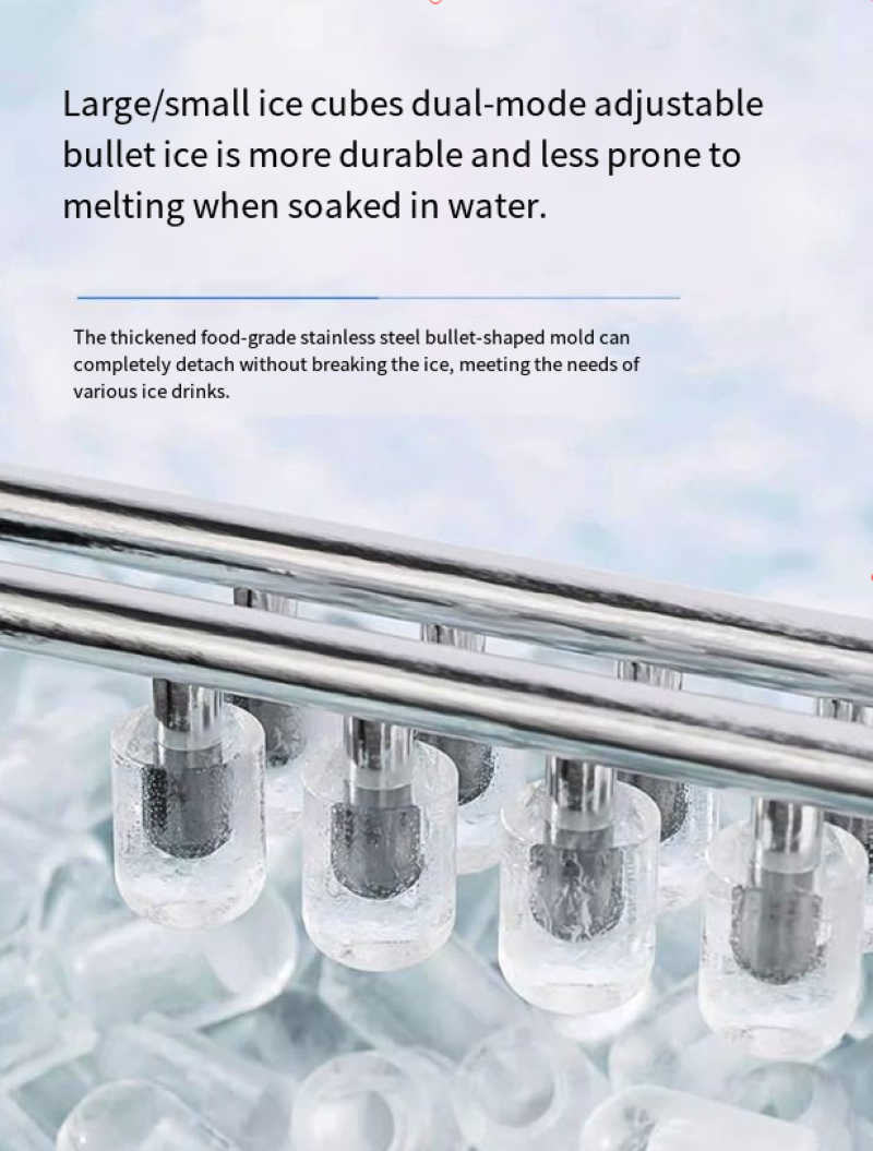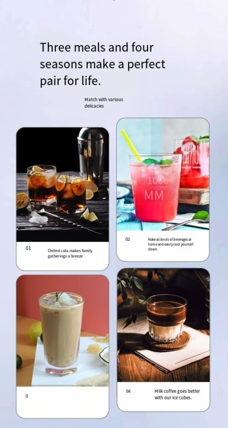 Em um dia sufocante de verão, nada pode aliviar o calor mais rápido do que uma bebida gelada. E esta máquina de gelo é a companheira perfeita para você alcançar a "liberdade da bebida gelada". Da velocidade, limpeza à adaptação da cena, ele atende totalmente a todas as suas expectativas para cubos de gelo.