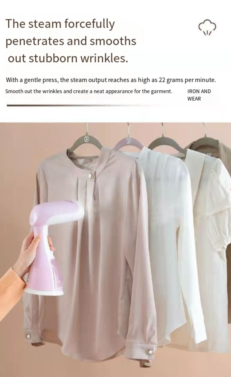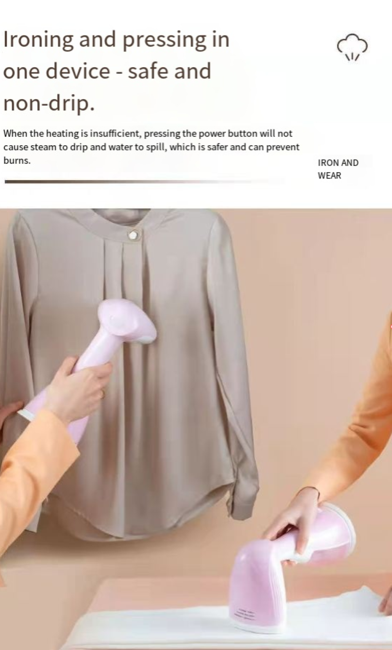 O corpo é compacto e leve, com um grande tanque de água de 300ML para atender às necessidades de passar várias peças de roupa, e não aumenta o peso excessivo. Ele pode ser facilmente colocado na bagagem durante viagens ou viagens de negócios. A operação adota um design de início com um clique, sem necessidade de ajustes complexos, e até mesmo idosos e crianças conseguem dominá-lo rapidamente; Ao usar, é seguro sem pingar água, e as roupas estão secas após passar a roupa, e você pode usá-las diretamente sem esperar.