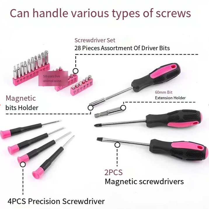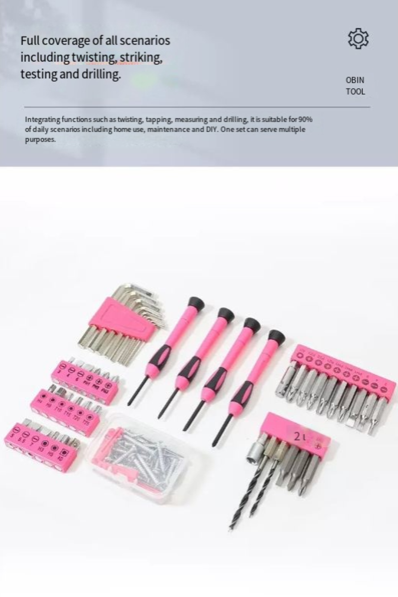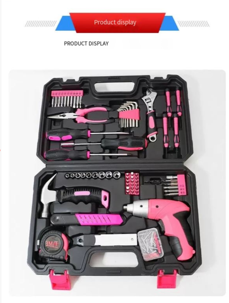 Você ainda está preocupado com as ferramentas bagunçadas e a operação extenuante ao fazer reparos domésticos? Este conjunto de ferramentas domésticas multifuncionais rosa combina perfeitamente um design elegante com funções práticas e é sua arma secreta para manter sua casa com boa aparência e fortes capacidades.