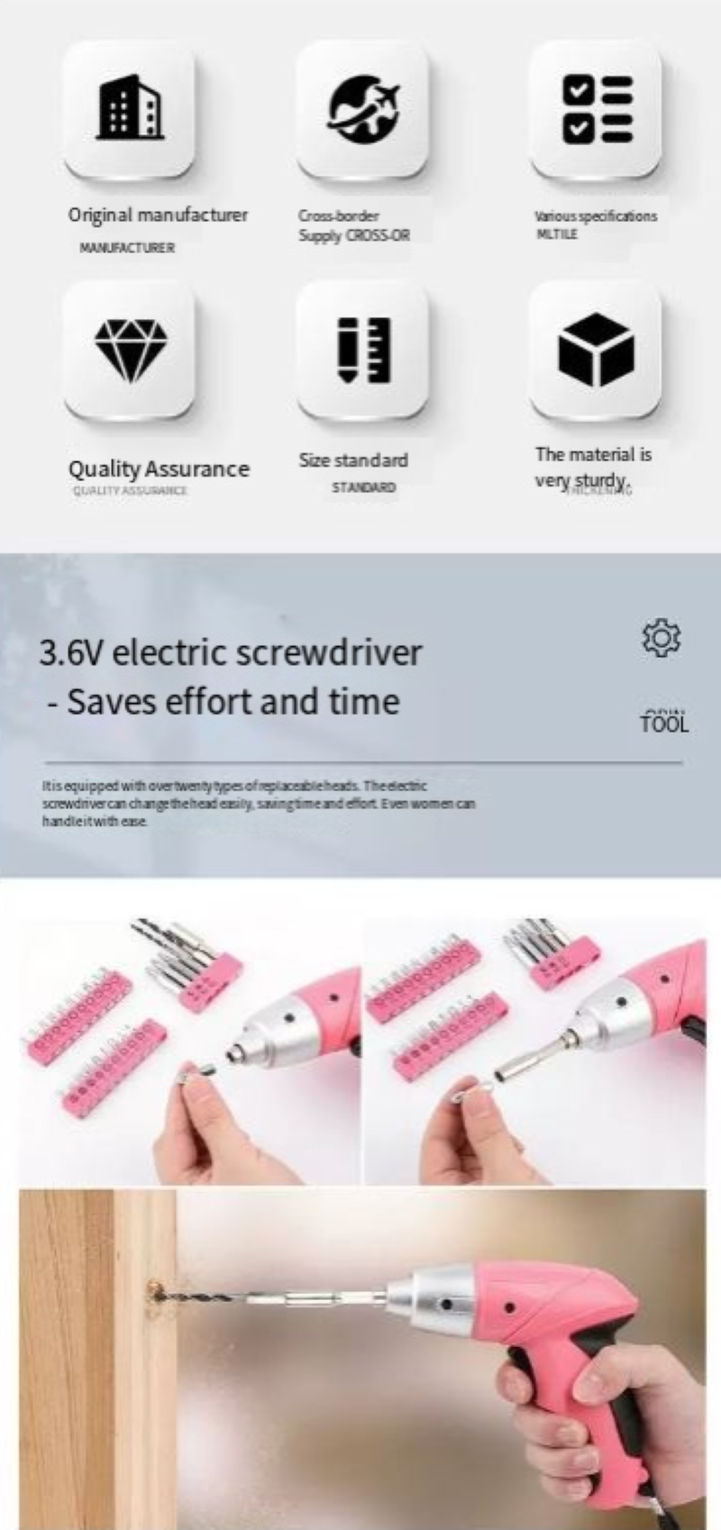 Você ainda está preocupado com as ferramentas de reparo doméstico espalhadas e pesadas e a operação extenuante? Este kit de ferramentas de reparo doméstico de chave de fenda elétrica de 151 peças, com as vantagens triplas "design moderno rosa + núcleo de eficiência elétrica + matriz de ferramentas para todos os cenários", quebra o estereótipo de "ferramentas = pesadas e monótonas", tornando-se a "ferramenta de moda de manutenção doméstica" em suas mãos. Da montagem de móveis à manutenção elétrica, cada ação se torna "fácil e eficiente, com uma excelente aparência".
