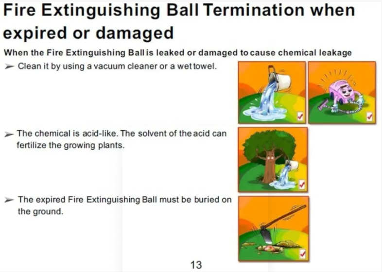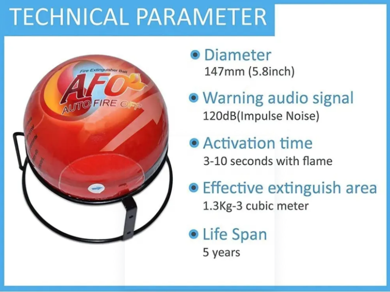 Como uma marca profissional de combate a incêndios, o componente de pó seco da bola de extinção de incêndio AFO não é tóxico e inofensivo. Depois de extinguir o fogo, é fácil de limpar e não causará danos secundários aos móveis e aparelhos elétricos. Seu invólucro é feito de materiais resistentes ao calor para garantir que seja acionado apenas em uma situação real de incêndio, eliminando o risco de erro de julgamento.