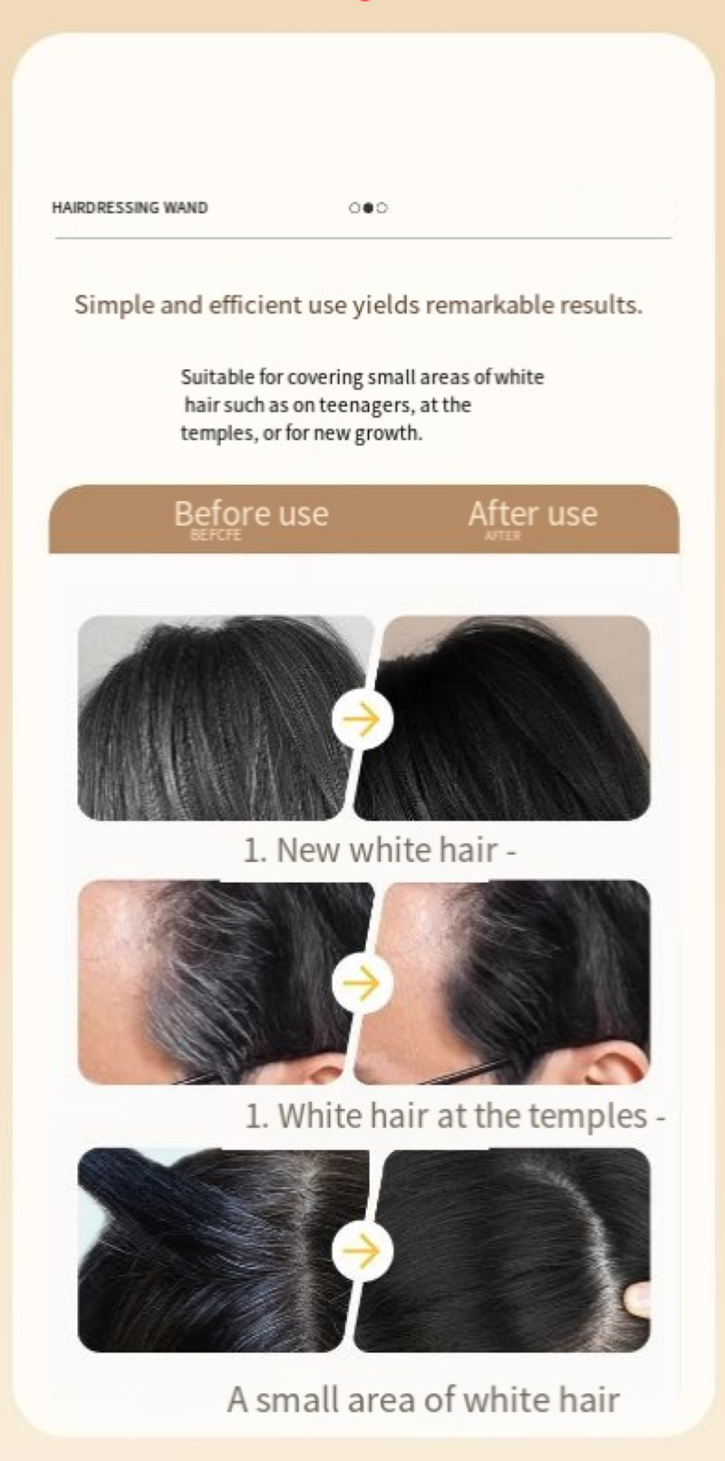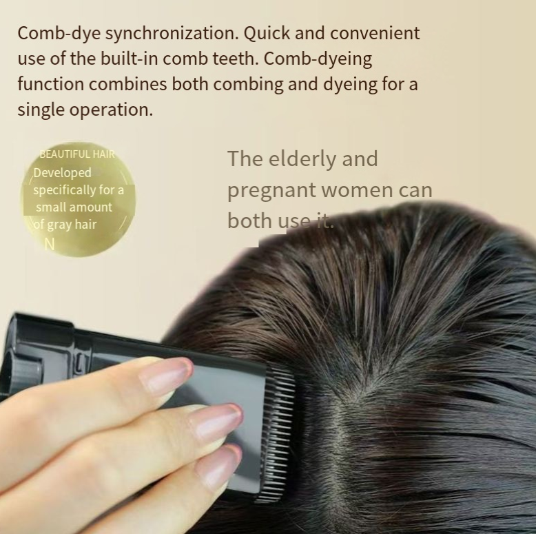 Ele fundiu "pente + pasta de tingir" em uma única peça.: Quando você empurra o dispositivo, os dentes finos embutidos retêm a pasta preto-marrom e, assim como ao pentear, cobrem suavemente o cabelo branco – sem a necessidade de agentes de tingimento ou luvas, pode cobrir completamente os pelos brancos espalhados no topo e nas laterais da cabeça em 2 minutos – a cor do cabelo após a tingimento é tão natural quanto o cabelo original, e Não há vestígios de "retingimento".