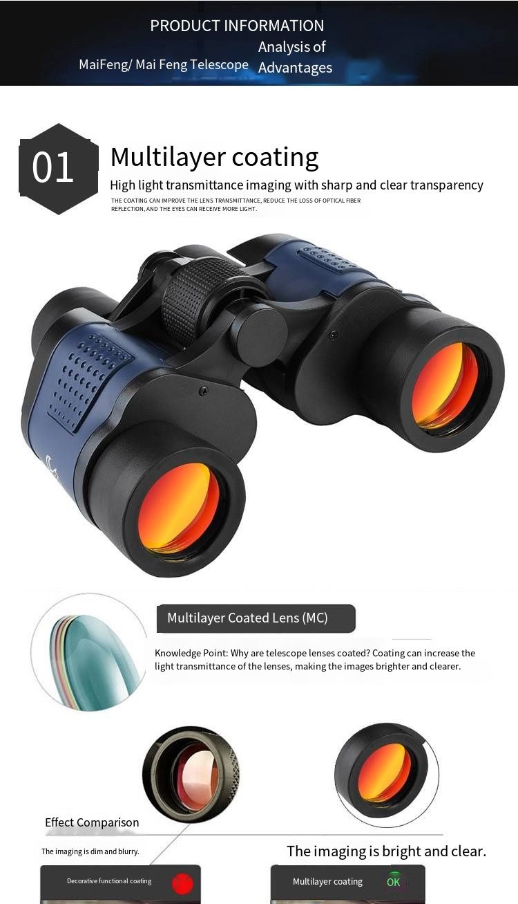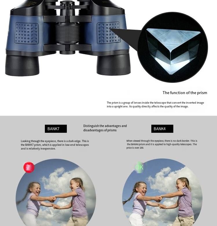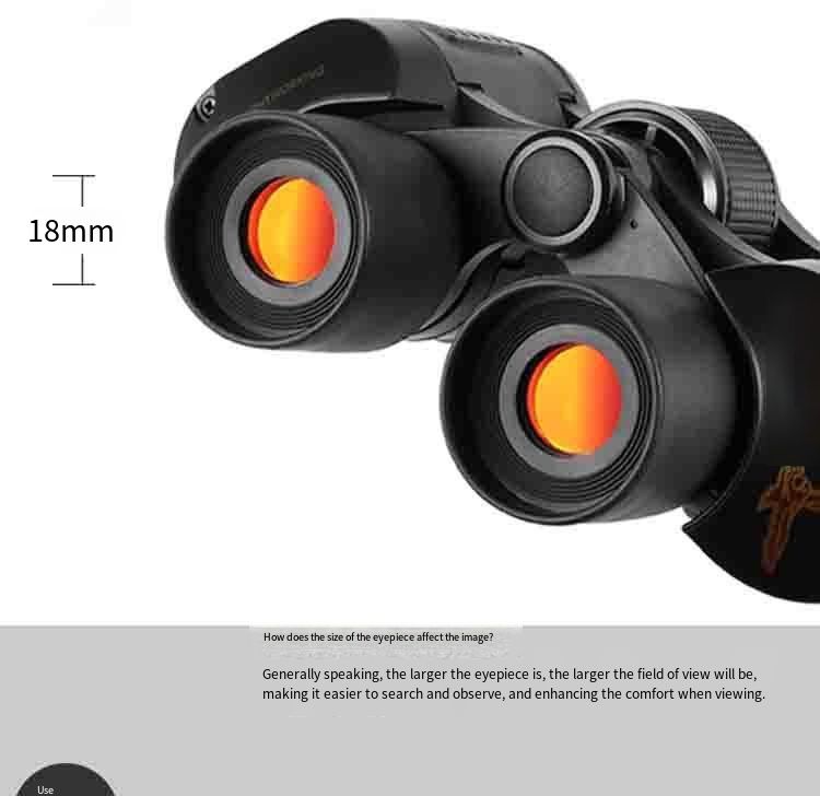 Ampliação 60x alta + abertura grande de 60mm, ocular super-grande de 18mm combinada com revestimento de alta transparência, pode capturar detalhes claros mesmo em condições de pouca luz – sem problema para observar aves ao entardecer ou observar estrelas à noite! Medição de coordenadas embutida permite determinar com precisão o terreno durante a caminhada e travar facilmente o centro do palco nos shows. Corpo antiderrapante de borracha + design portátil, pode ser usado com ele na mochila. Seja para exploração ao ar livre ou para observação por lazer, é o seu "ocular", fazendo com que as maravilhas distantes se aproximem!