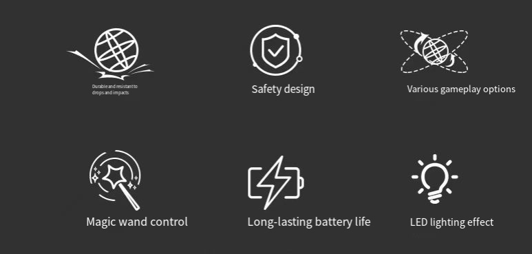O design visual da bola voadora é realmente engenhoso, lembrando um cenário misterioso de um filme de ficção científica. A forma esférica apresenta uma estrutura delicada de grade perfurada, e os componentes centrais são quase invisíveis, exalando um charme extremamente tecnológico. Quando é iluminada, as luzes de LED coloridas piscam e mudam dentro da bola, parecendo estrelas brilhantes no céu noturno ou uma bola de luz mágica em uma cena onírica, capturando instantaneamente a atenção de todos. Seja segurando na mão para brincar ou deixando-a voar no ar, ela se destaca como particularmente chamativa.