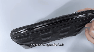 Ele está equipado com um módulo preciso de reconhecimento de impressões digitais. Após a entrada da impressão digital, um toque suave da ponta do dedo pode desbloqueá-la em 1 segundo, e ela não será aberta por outras pessoas; Pode ser carregado uma vez e usado por 30 dias, eliminando a necessidade de recarregar a bateria com frequência, tornando as saídas mais convenientes – coloque sua carteira, carteiras de identidade e celular dentro, e você não precisará mais se preocupar em ser roubado.