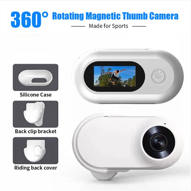 A revolução na captura de imagens com a câmera de ação de polegar anti-vibração de aperto magnético! Esta câmera permite capturar cada movimento como um filme de alta definição.