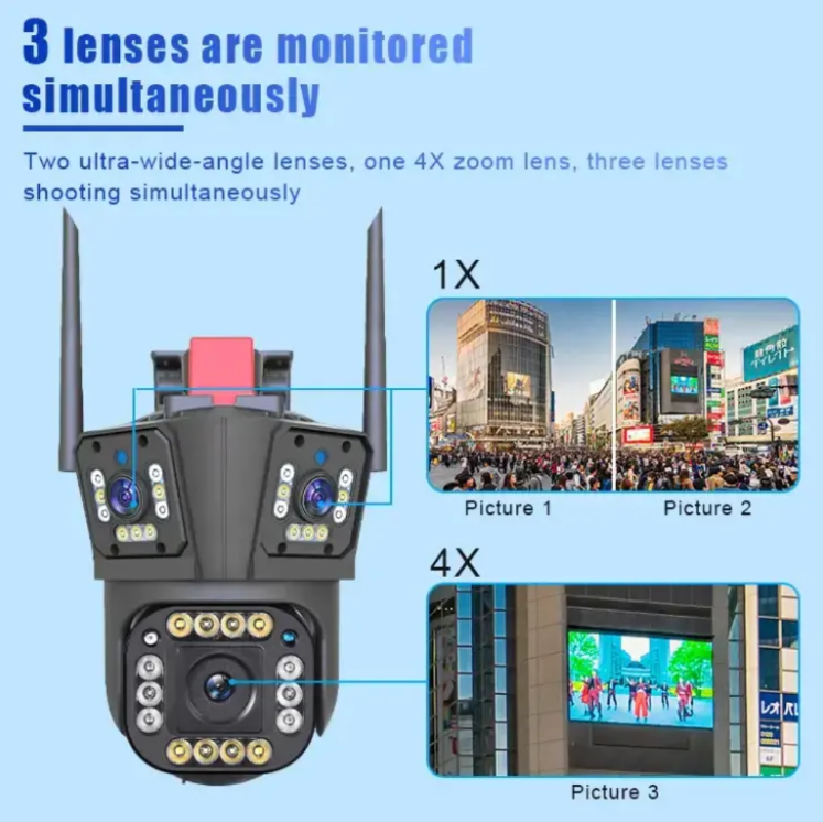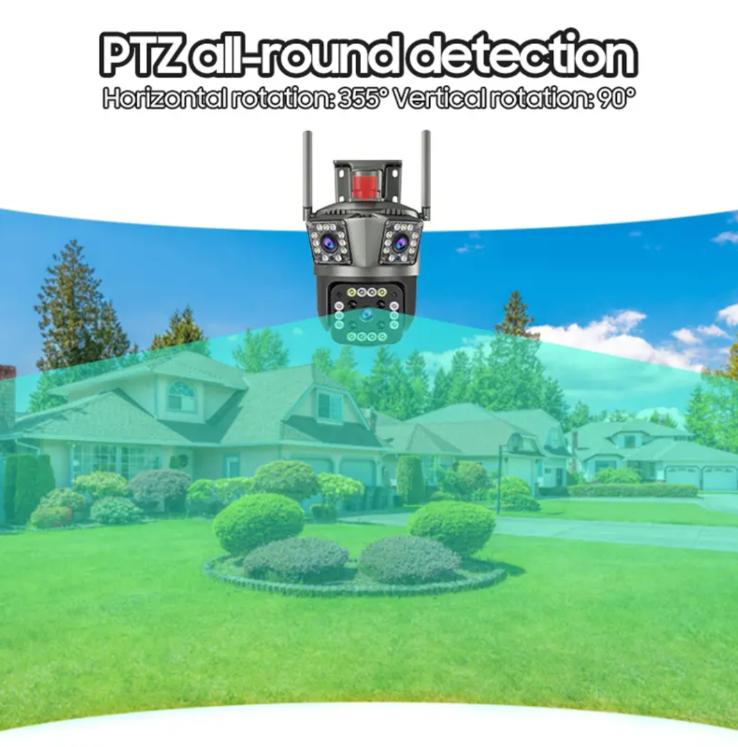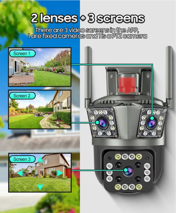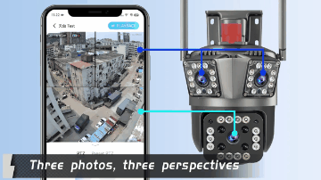 Câmera de vigilância inteligente externa de visão noturna de alta definição de três telas: segurança doméstica completa de 360° "Smart Guardian"