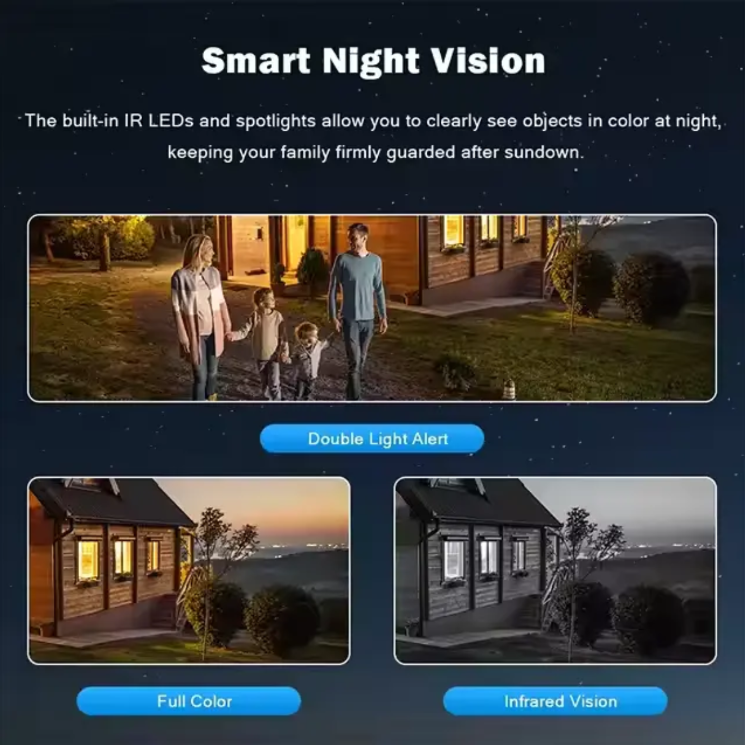 Desde proteger a segurança dos idosos que vivem sozinhos em casa, até proteger a segurança da propriedade do pátio da villa, até prestar atenção à segurança das crianças ao ar livre, a câmera de vigilância inteligente de 360 ° à prova d'água de visão noturna de alta definição de 3 imagens pode lidar com todas essas tarefas. Não é apenas um dispositivo de vigilância, mas também o "gerenciador de segurança inteligente" da família, permitindo que você proteja cada centímetro da casa com uma visão panorâmica de três fotos a qualquer momento, sem pontos cegos, e dando à sua família uma sensação de segurança.