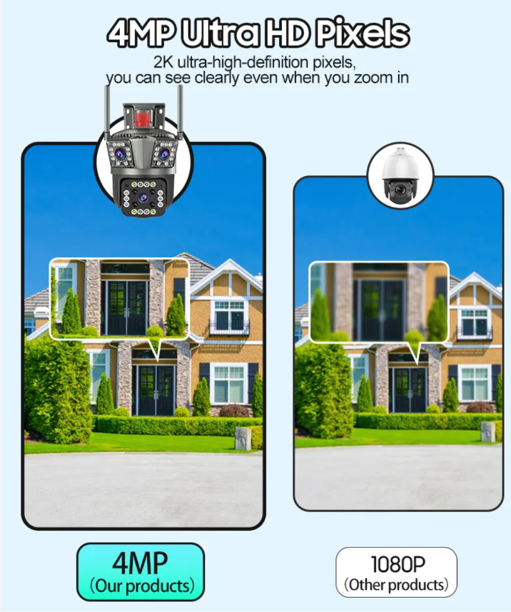 A segurança da sua casa é a principal demanda de todas as famílias. Quando você está preocupado com ruídos estranhos do lado de fora da porta, preocupado com idosos ou crianças sozinhas em casa, ou deseja verificar as flores, plantas e animais de estimação no pátio a qualquer momento, esta câmera de vigilância inteligente de 360 ° à prova d'água ao ar livre de visão noturna de alta definição de três telas, com seu desempenho completo de "monitoramento de várias telas + visão noturna de alta definição + compatibilidade com todos os cenários", torna-se o "Guardião Inteligente" da sua família, garantindo que sua sensação de segurança esteja sempre disponível