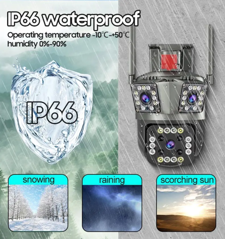 É também o "campeão da adaptação" do meio ambiente. Com design à prova d'água ao ar livre, pode suportar intempéries, como chuva e tempestades de areia, e é durável quando instalado na varanda ou pátio. Ele também possui a função de detecção humana PIR, que enviará imediatamente um alarme para o celular ao detectar atividades anormais, permitindo que você acompanhe a dinâmica da casa a qualquer momento. Ele também suporta vigilância sem fio, mesmo se a rede for interrompida, a vigilância básica não falhará.