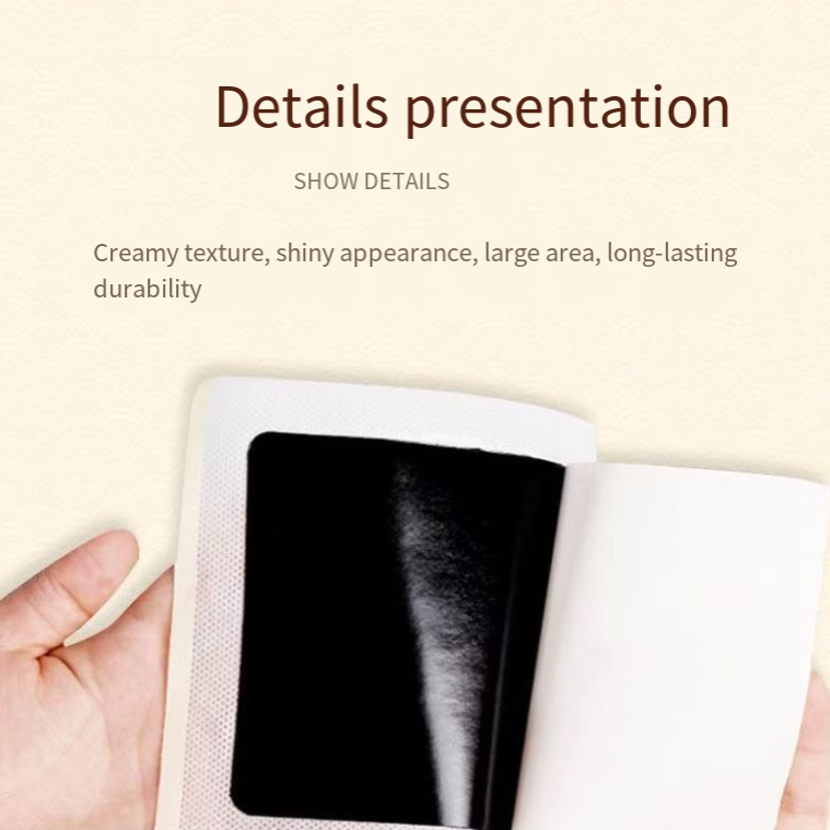 O adesivo é feito de materiais medicinais, amigáveis à pele e respiráveis, finos e aderem bem. Quando aplicada nos ombros, pescoço, costas, joelhos, etc., não deixa a pele congestionada nem causa alergias ou vermelhidão. Durante o trabalho diário no escritório, aplique nos ombros, em casa ou deitado, aplique na cintura e, mesmo ao sair para caminhar, aplique nos joelhos. Não afeta o movimento e pode proporcionar alívio silencioso. Você pode aproveitar o relaxamento onde quer que esteja.