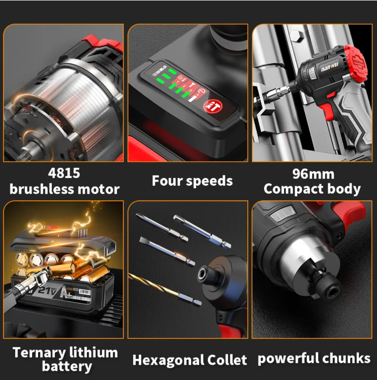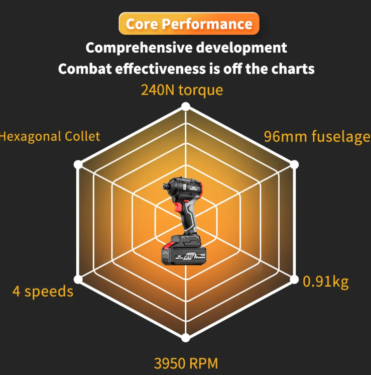 Sua "confiança em alta potência" vem da configuração poderosa da bateria de lítio 21V e do motor brushless: o motor brushless não só fornece potência total, mas também tem uma vida útil várias vezes maior que a dos motores escovelhas comuns – ao apertar os parafusos de fixação de alta resistência dos trilhos ferroviários, não é necessário gritar por ajuda ou pedir ajuda a alguém; basta pressionar o interruptor e ele pode segurar firmemente o torque, e os parafusos grossos podem "afrouxar e apertar instantaneamente"; Ao trocar pneus grandes em reparos automotivos, não há necessidade de se preocupar com uma chave manual; Em poucos segundos, é possível remover ou instalar facilmente um parafuso, evitando a fadiga e a dor que impediriam de levantar os braços.