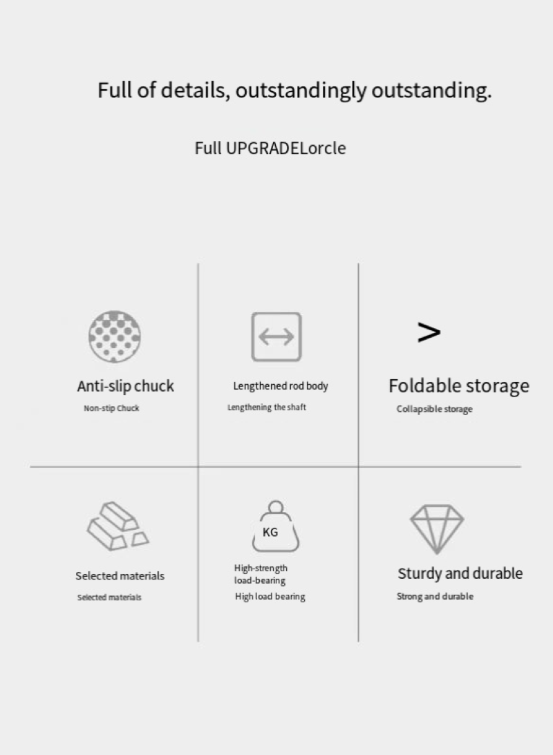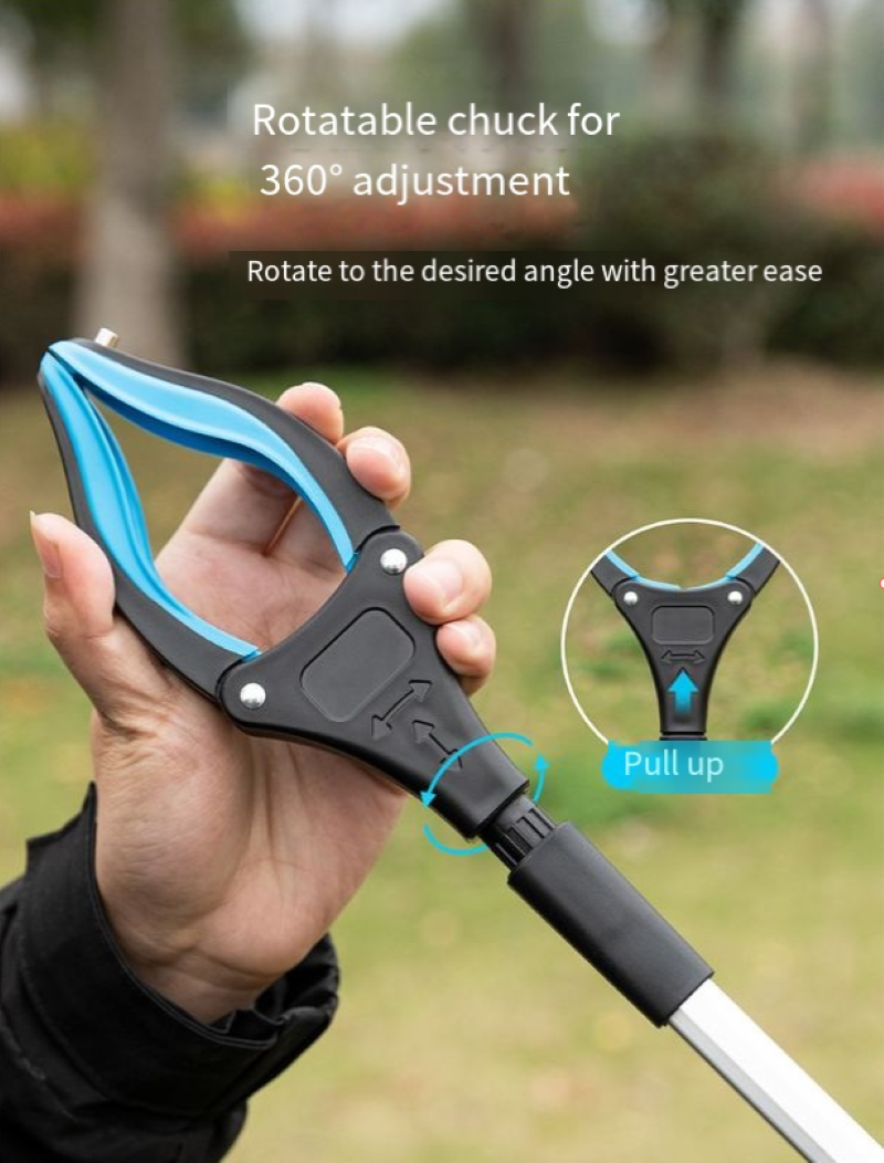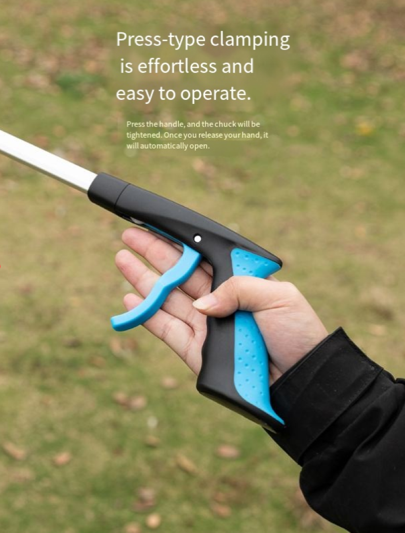 O corpo da haste é feito de liga de alumínio leve, com comprimento total de 82cm – não precisa se curvar para recolher lixo no chão, não precisa agachar para alcançar o controle remoto, e até caixas de correio altas podem ser facilmente alcançadas. É amigável para pessoas com problemas nas costas, gestantes ou idosos, eliminando completamente a "curvatura e tensão".